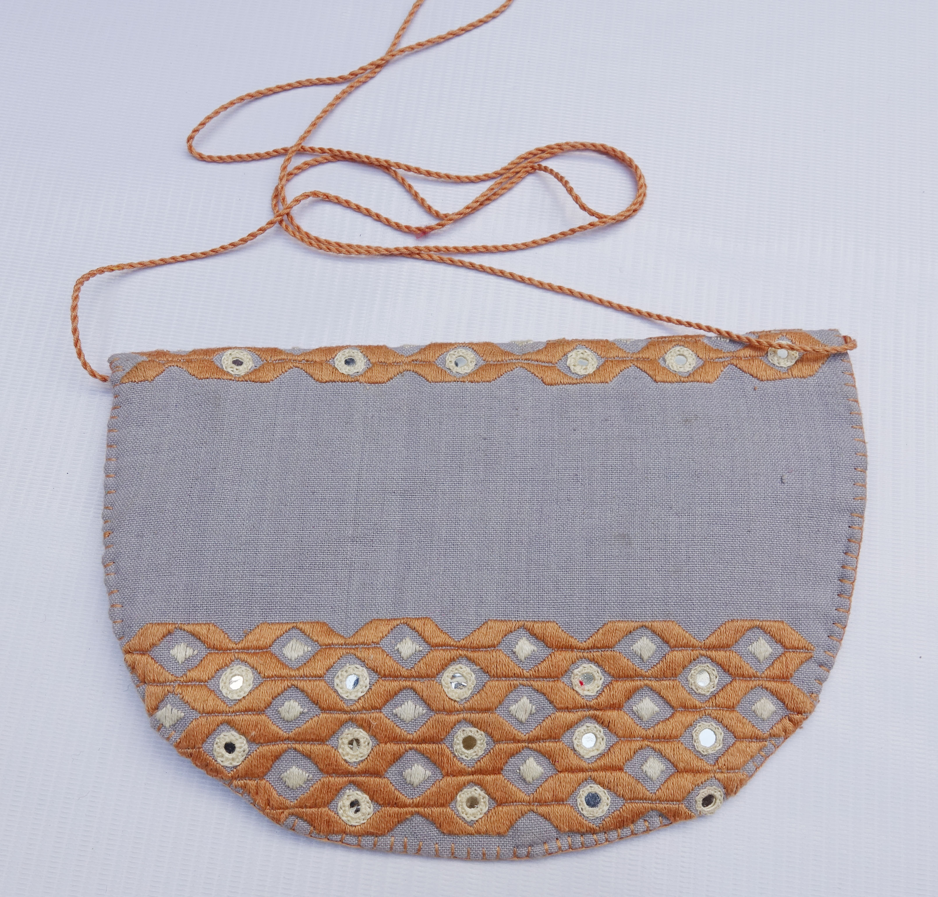 This traditional hand-embroidered purse, crafted in Rajasthan, features exquisite floral embroidery on both the front and back. Its stylish metal chain handle adds a touch of sophistication, making it a versatile addition to your wardrobe, suitable for casual outings and special events.