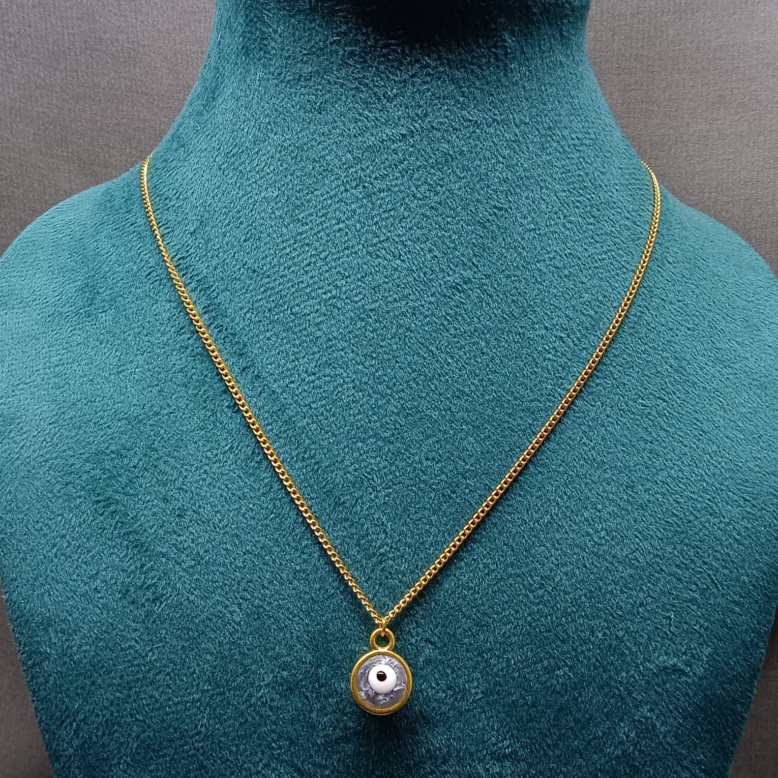 Design & Symbolism: Features a delicate gold-toned Evil Eye pendant with blue and white detailing, symbolizing protection and positivity.