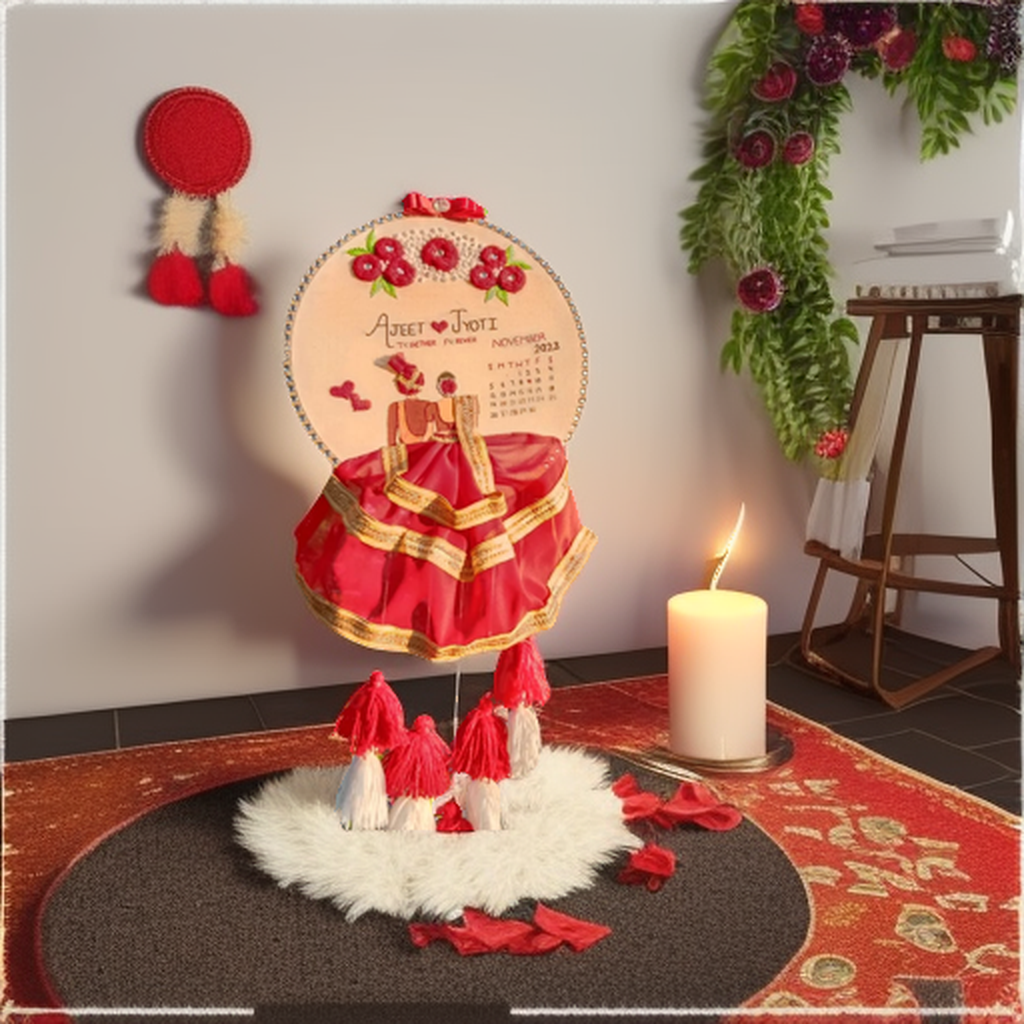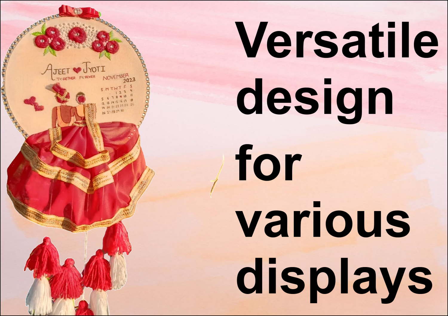 Elevate your decor with our stunning wooden frame crafted from premium karangarh. This decorative frame features intricate designs using soft wool and luxurious silk threads, perfectly complementing your lehenga choli. Made from high-quality dyed cotton fabric, it showcases vibrant colors and textures. Adorned with beautiful hanging stones and elegant ribbons, this frame is not just a display piece but a statement of art. Ideal for all users looking to enhance their home or event decor, this 10-inch frame is lightweight yet durable, making it easy to showcase your cherished outfits. Transform your space with this unique blend of tradition and style.