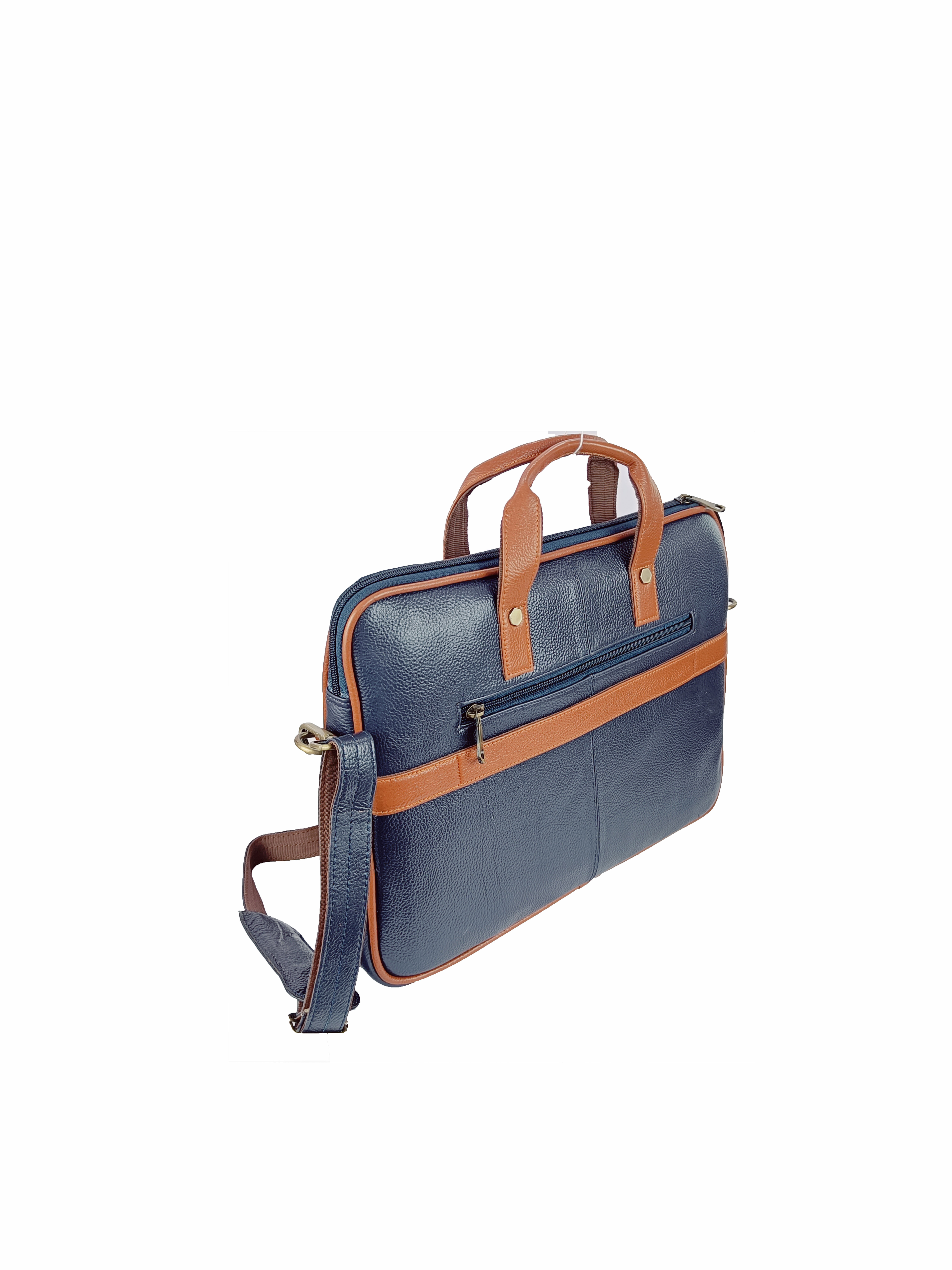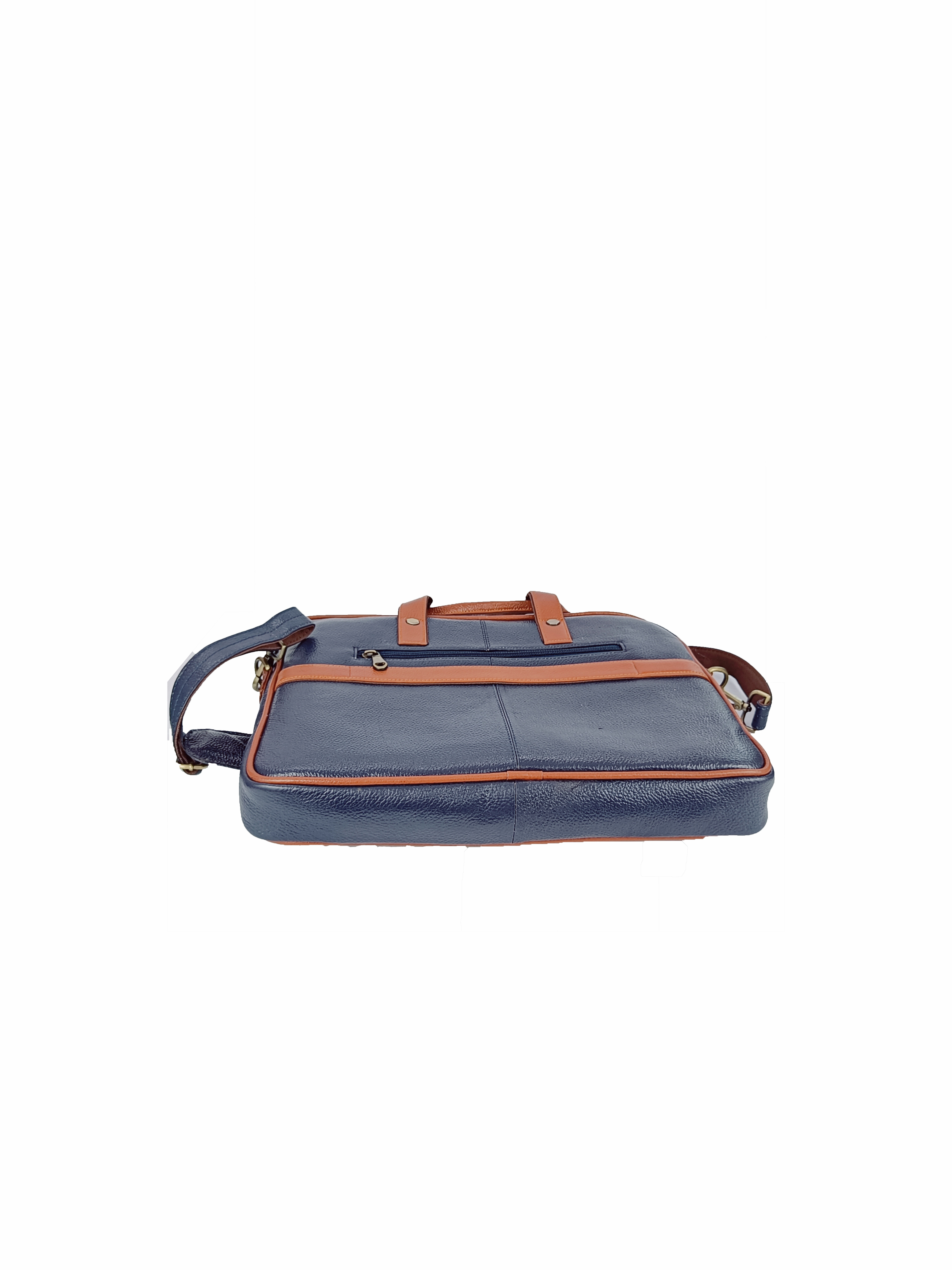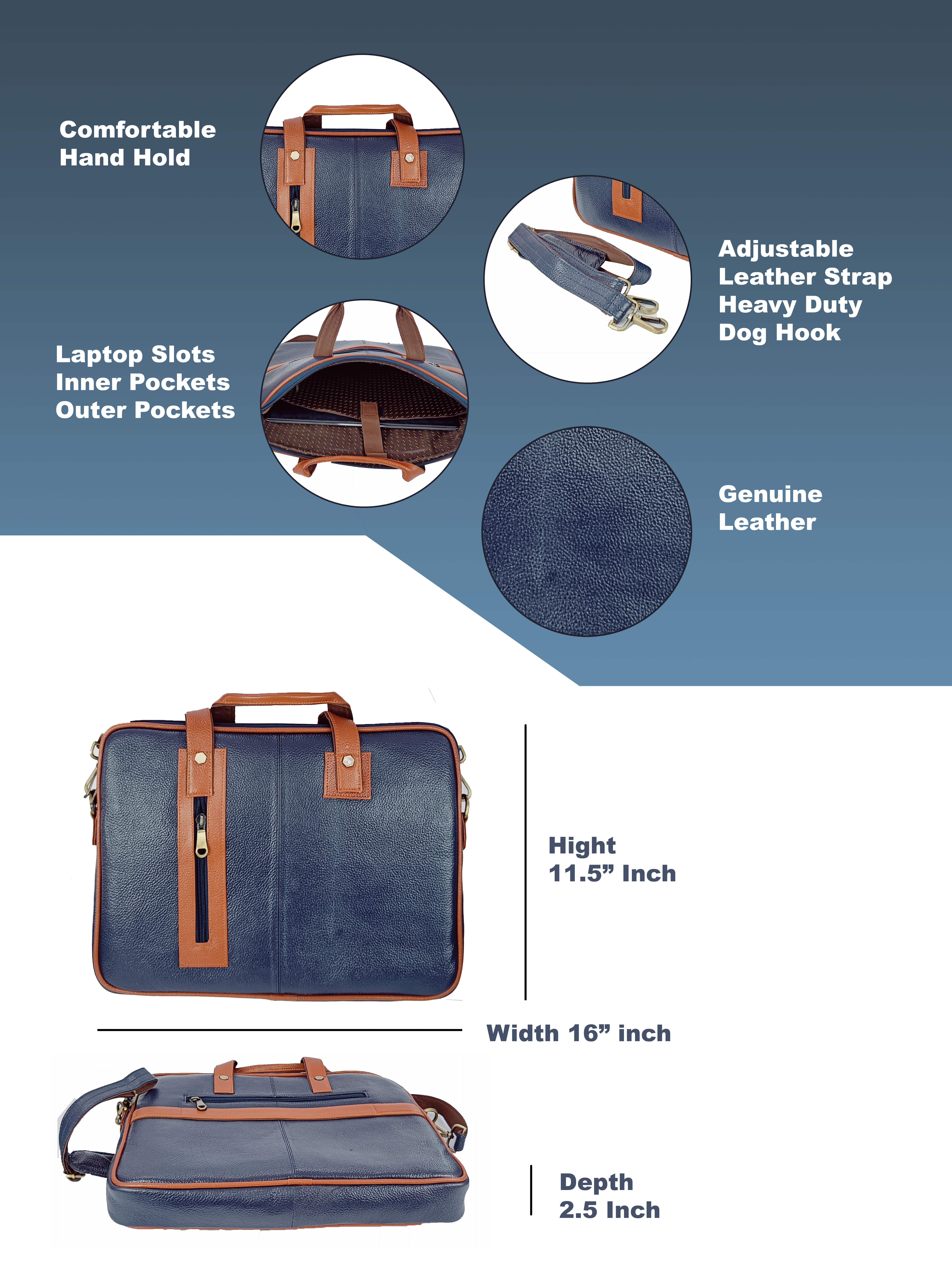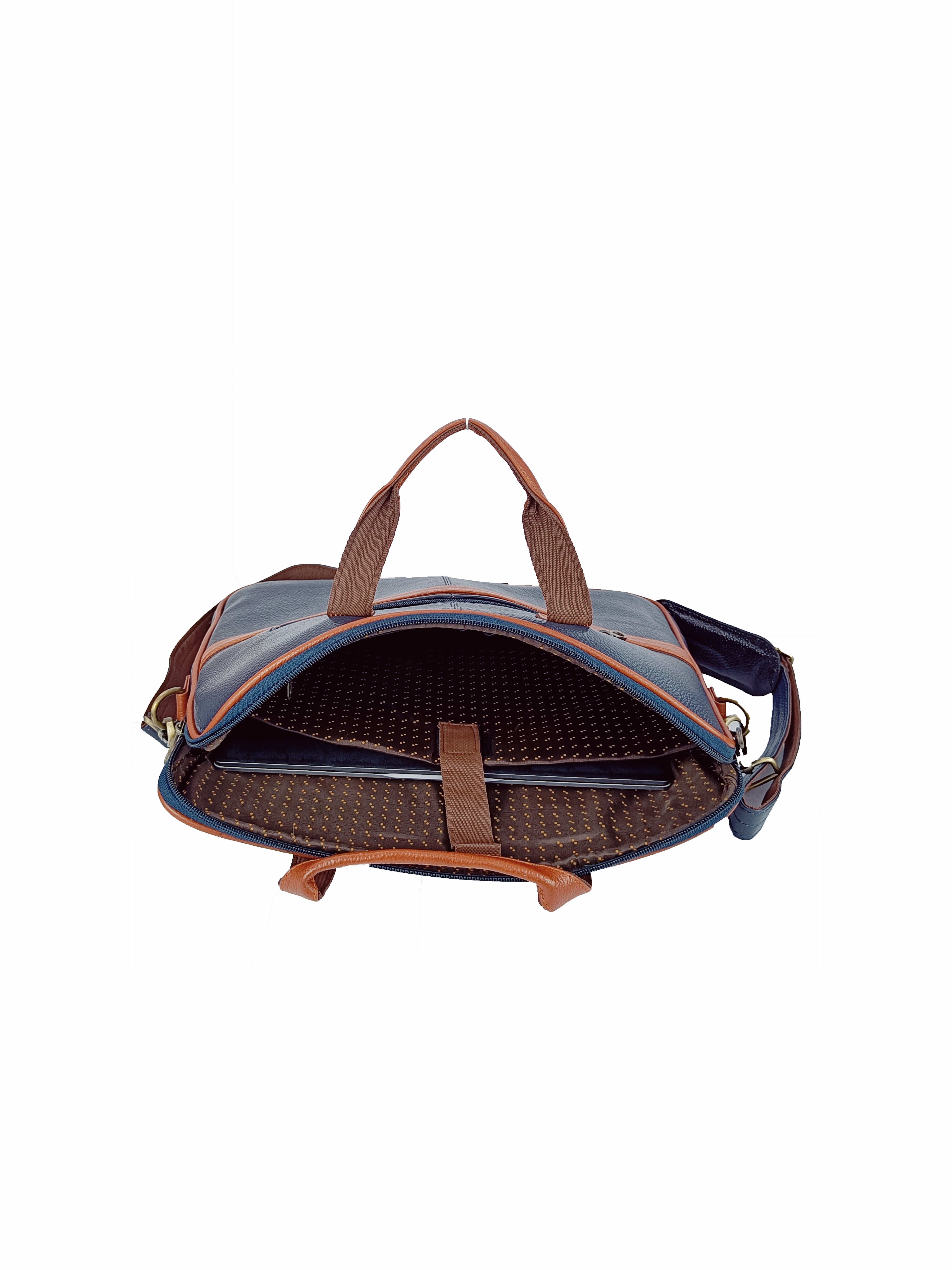 Genuine Leather Laptop Bag with Shoulder Strap| Blue & Brown | Macbook Compatible
