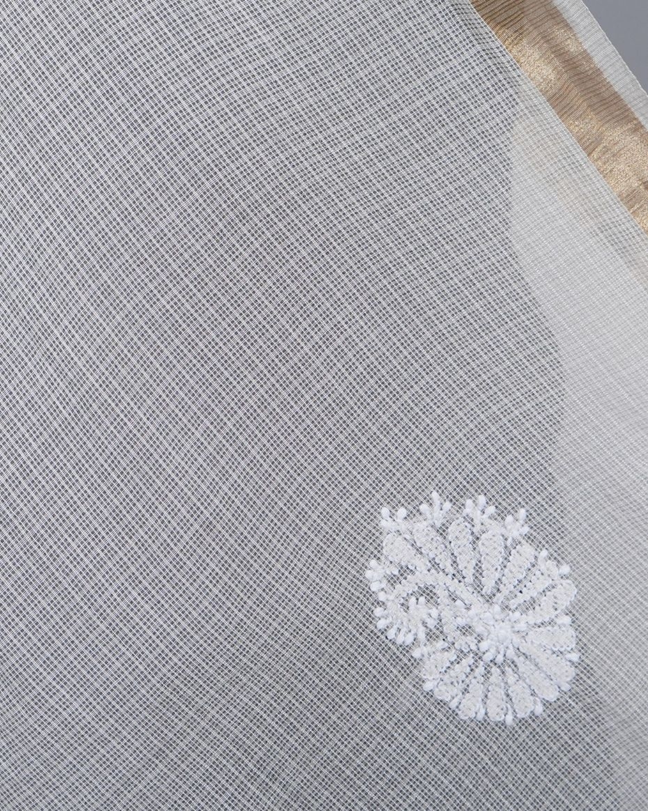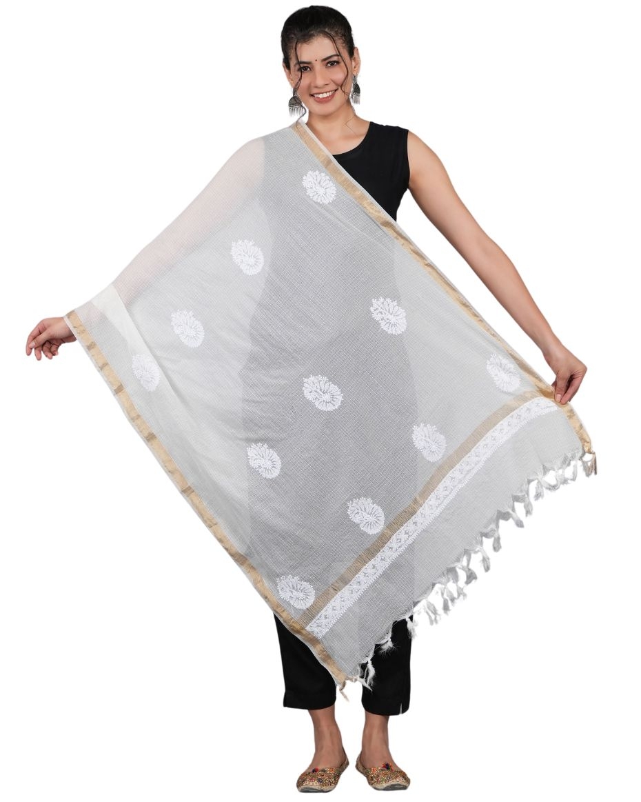 Firgun White Lucknowi Chikankari Dupatta in Soft Kota Cotton - Dyeable Fabric