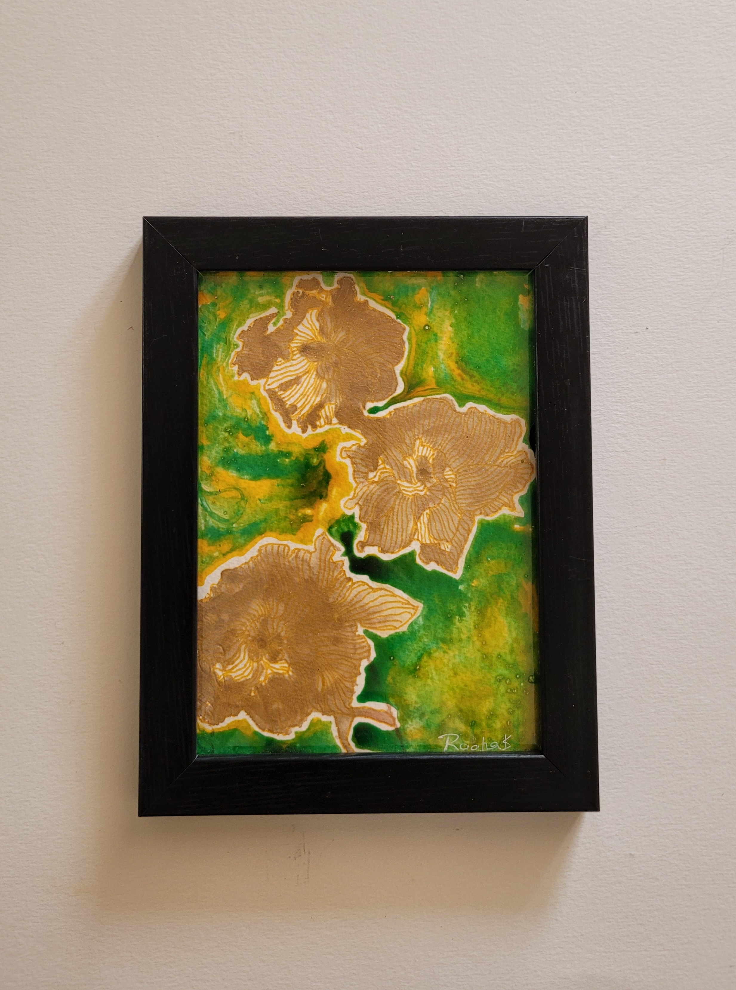 This unique artwork is done with highly creative and unique ideas. In this artwork, glass painting and eco-printing techniques have been used. Buy now this authentic artwork. In stock. Free delivery.