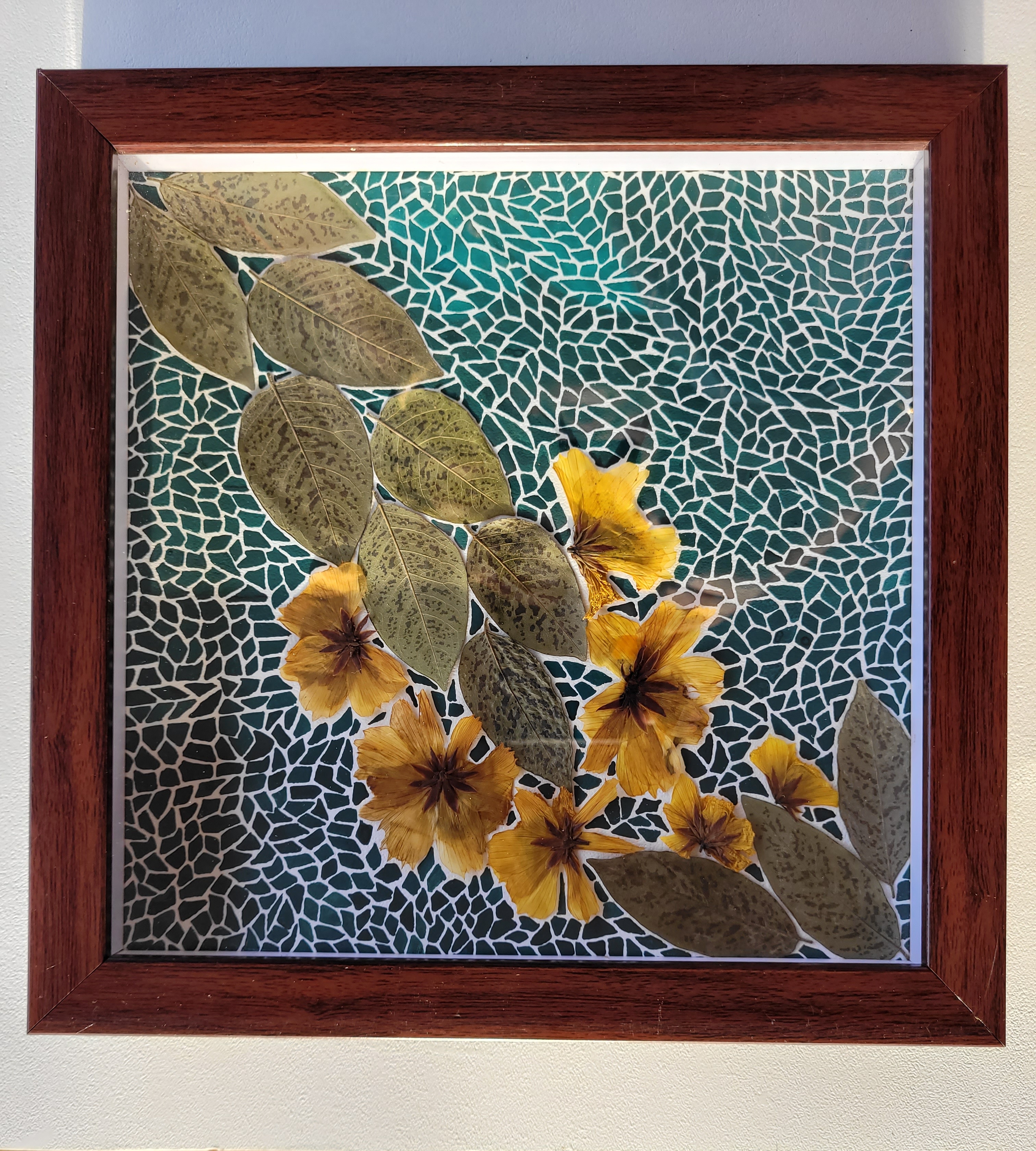 | Material | Paper, Poster Colour Painting, Dry Leaves , Flowers and Frame |