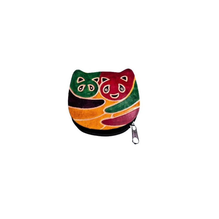 Genuine leather Small Coin Purse Panda Pair Design