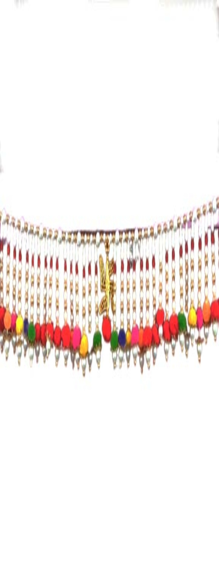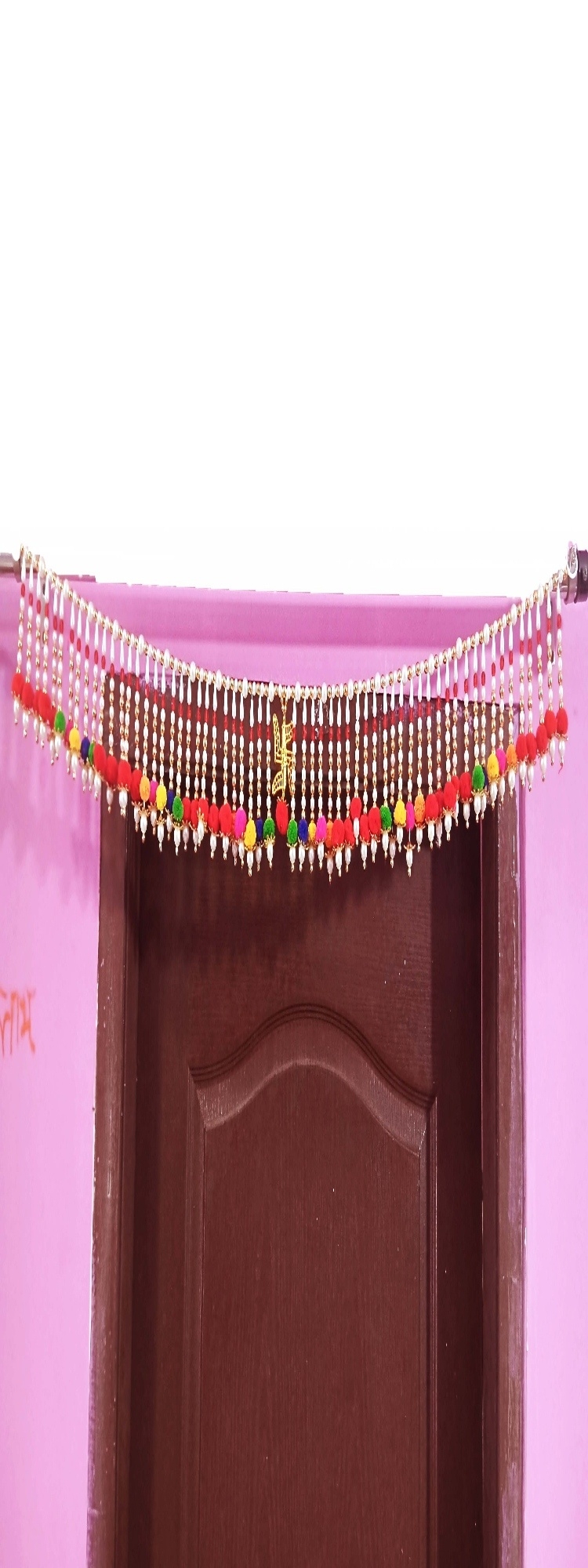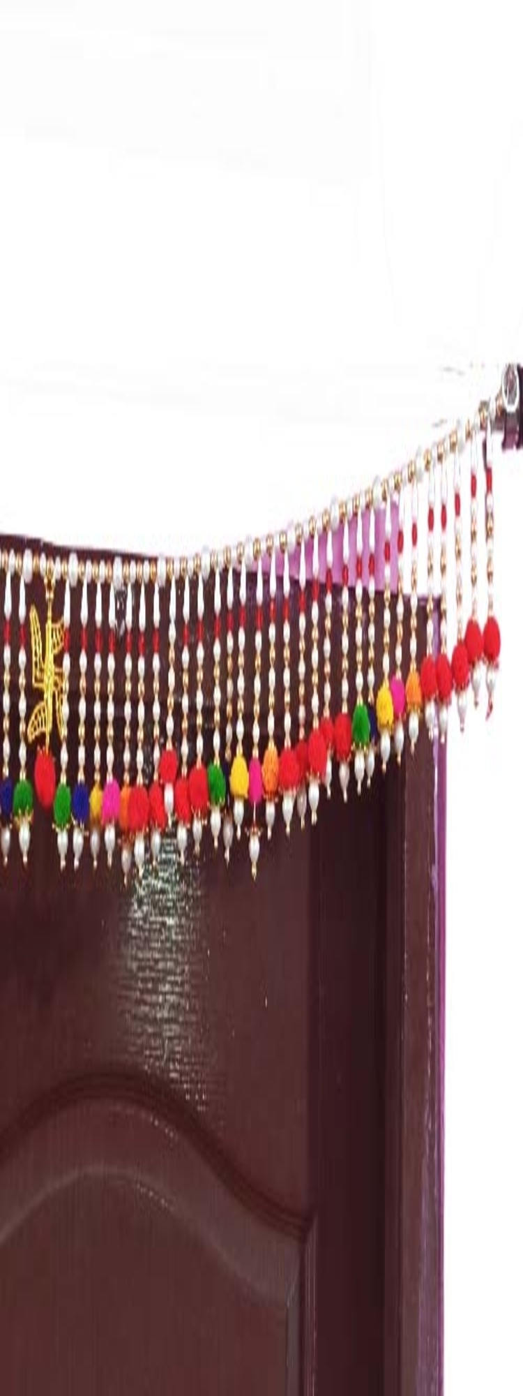 Moti Toran with Multicolour Pompoms| White and Golden