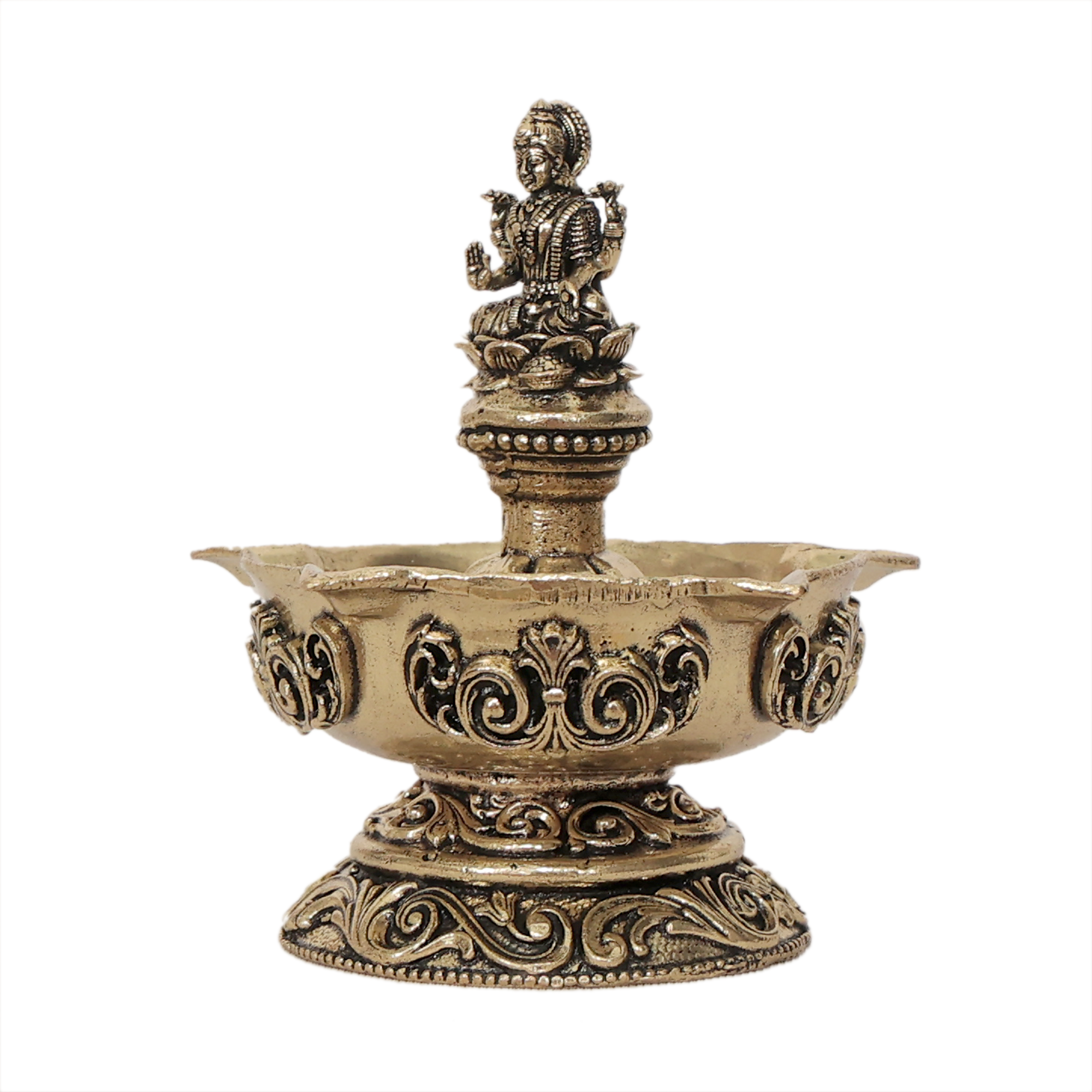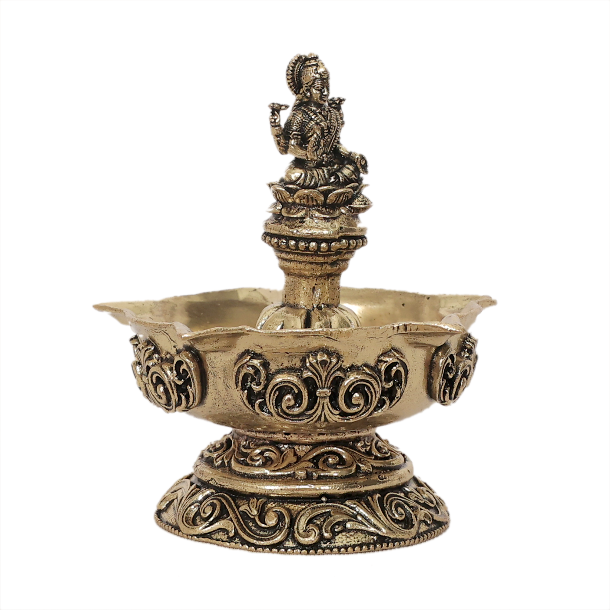 Goddess Lakshmi Brass Oil Lamp for Home Temple, Puja & Diwali Decoration KBH11969