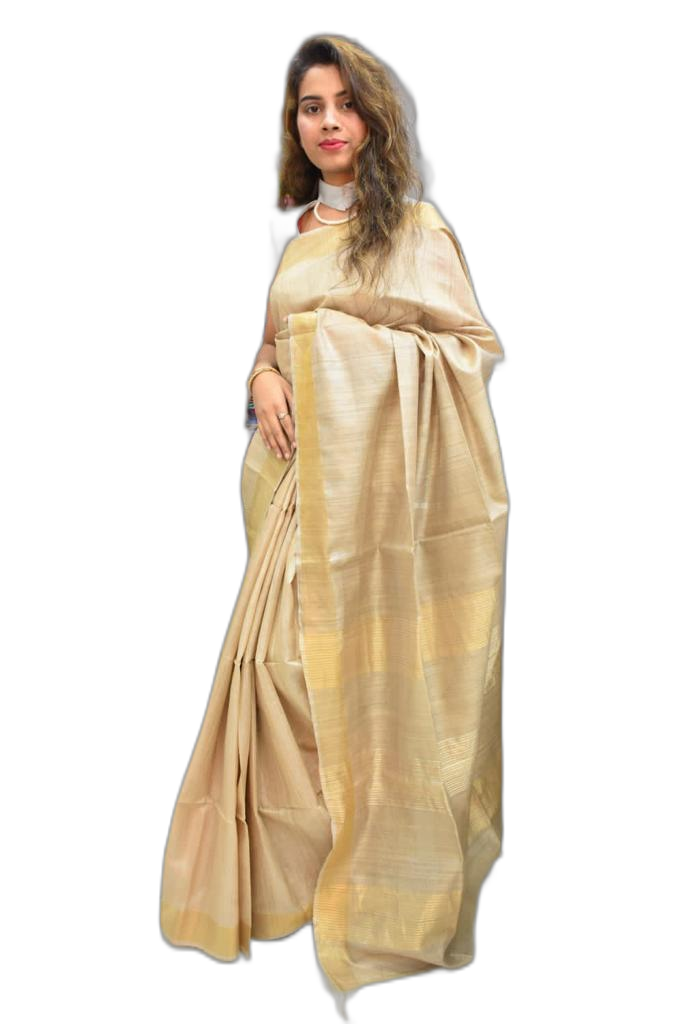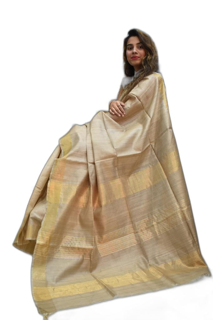 Golden Handwoven Tussar Zari Silk Saree
