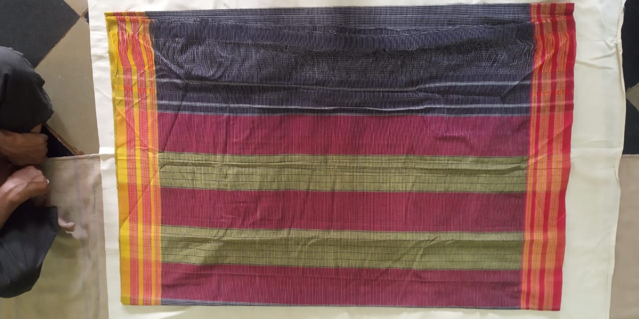 Gomi Boarder Cotton Saree Promtly Woven on handloom in the Households of Gadag District Karnataka State.