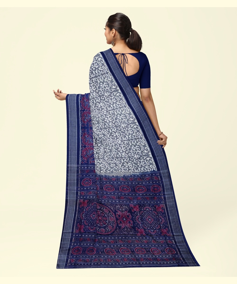 Gray Blue Sambalpuri Handwoven Single Ikat Cotton Saree SFCSAR2253