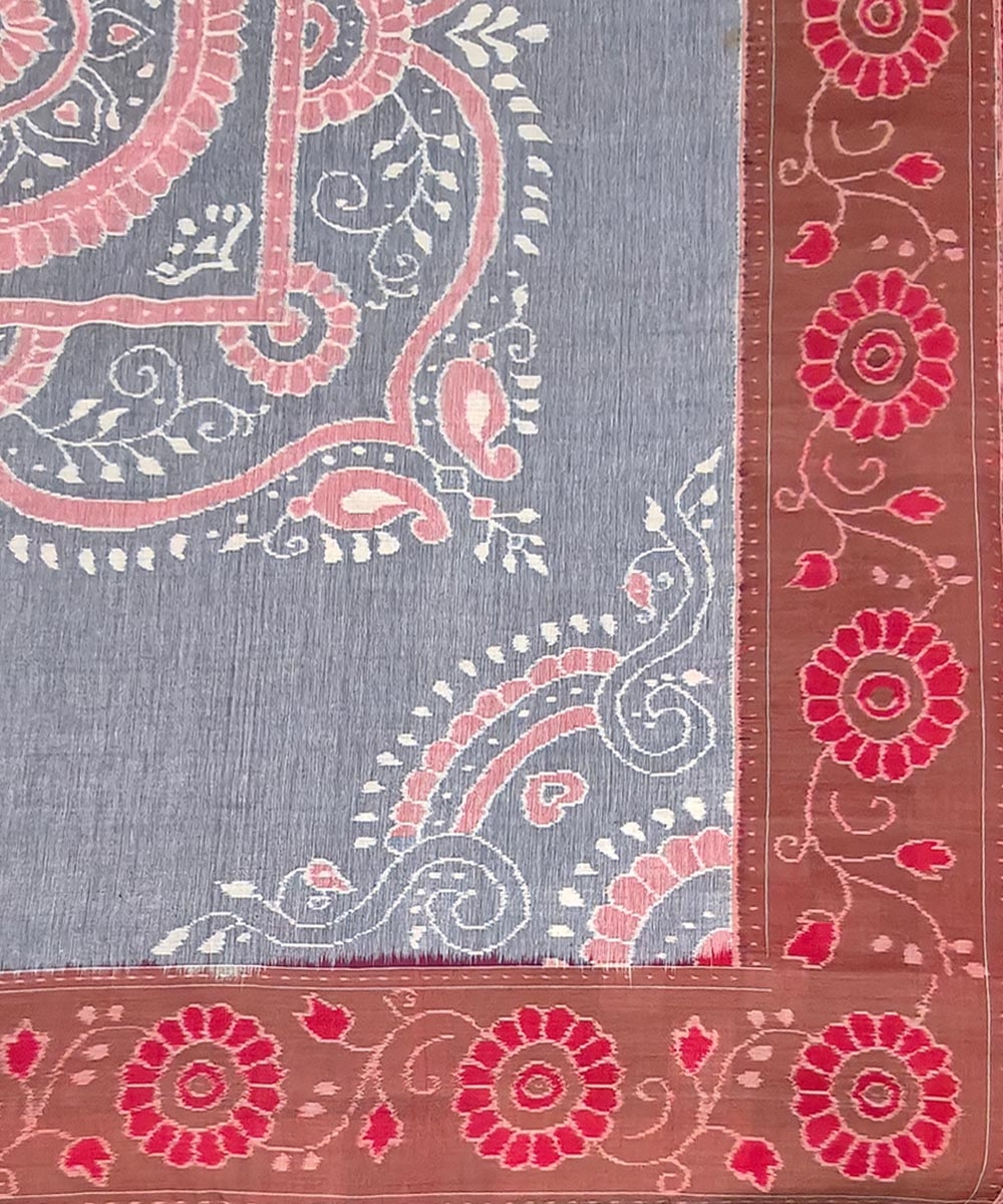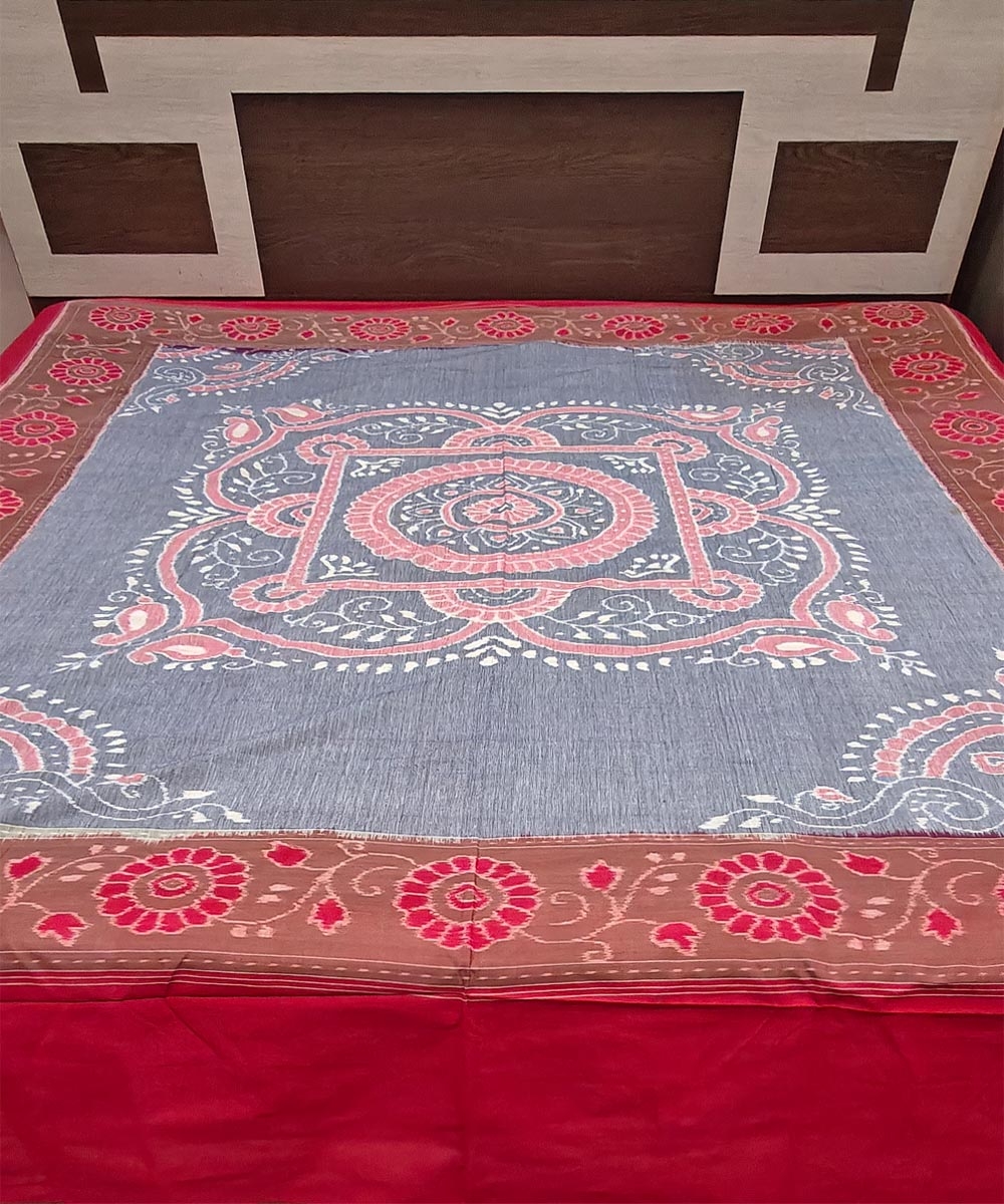 Gray Red Sambalpuri Handwoven Cotton Double Bed Sheet SMCBED2132