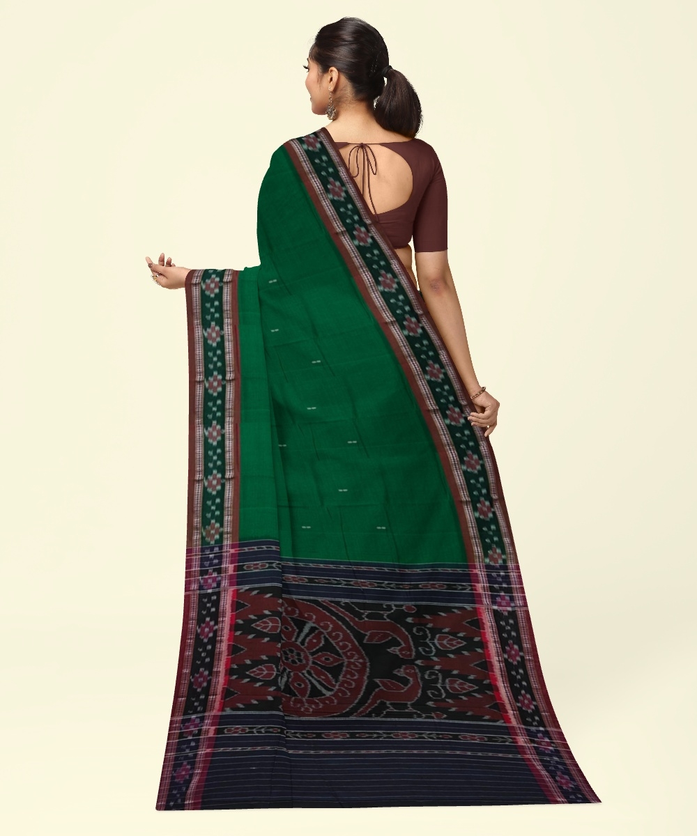 Green Maroon Sambalpuri Handwoven Single Ikat Cotton Saree SFCSAR2193