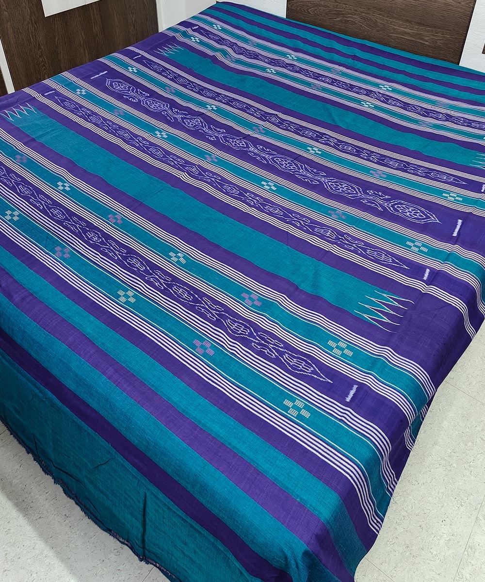 Green Sambalpuri Handwoven Cotton Double Bed Sheet SMCBED1284