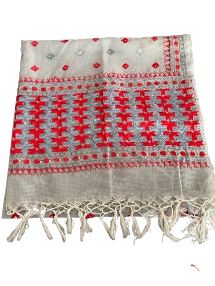This traditional dupatta stole is made of cotton along with embroidery work in floral design. This fashion chunni can also be styled with ethnic outfits for a glamorous look forever.