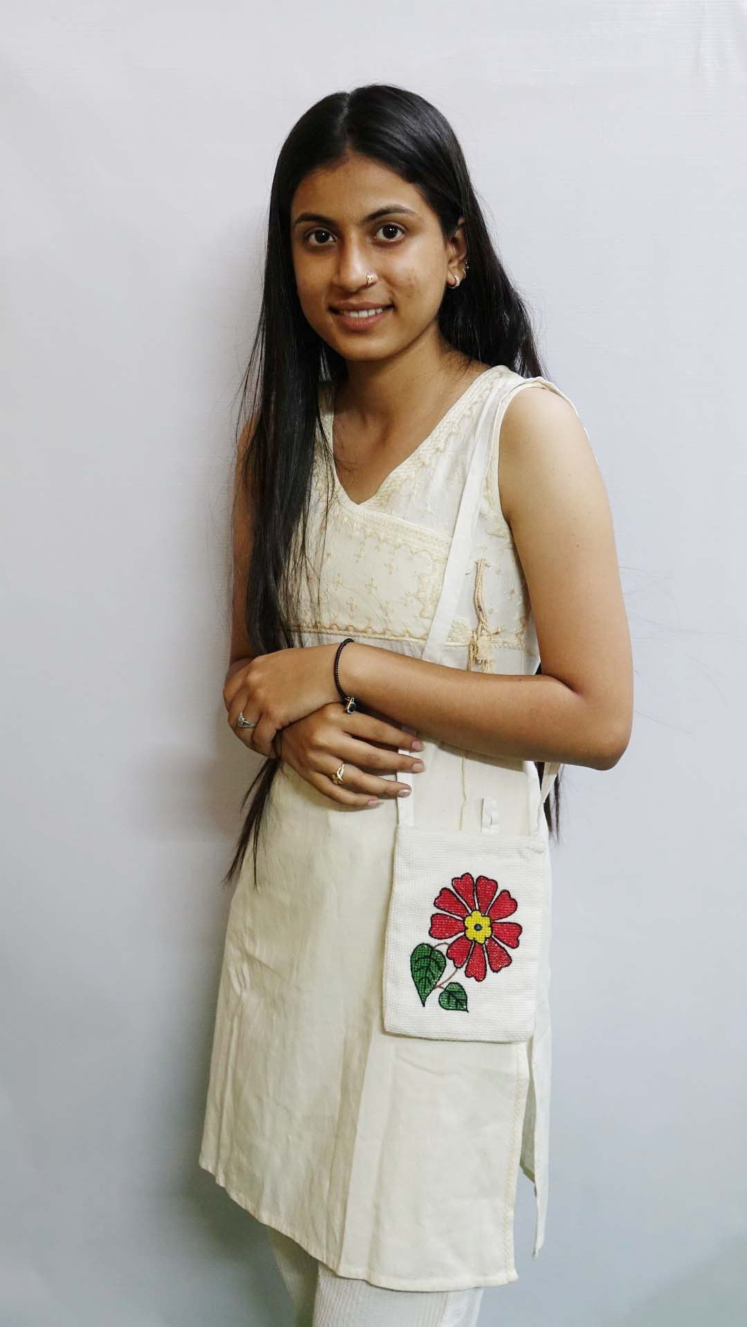 HAND EMBROIDERED FLOWER PRINT POUCH FOR WOMEN