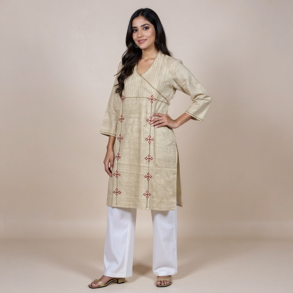 HAND EMBROIDERY SURPLICE NECK KURTA FOR WOMEN