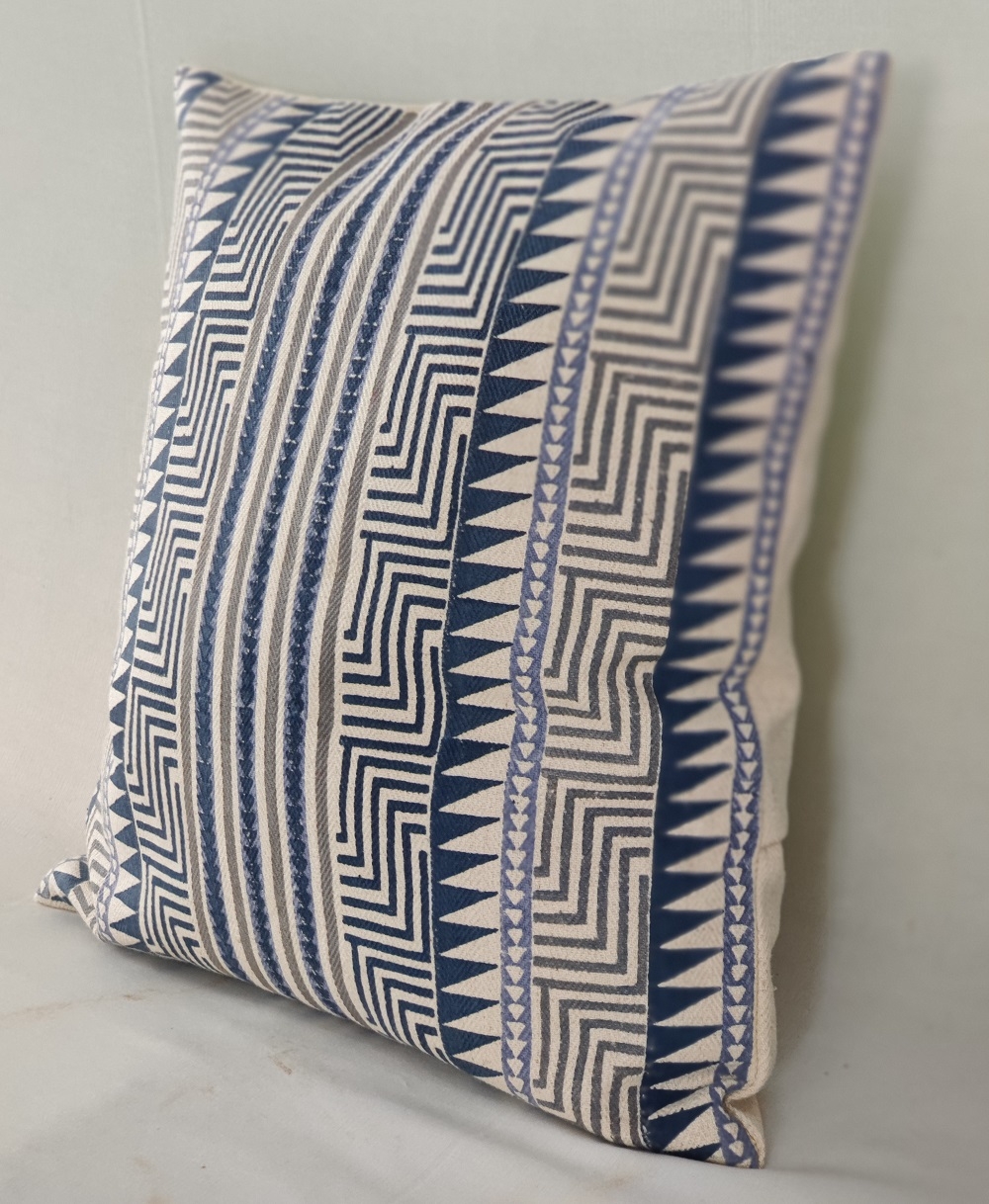 Add some color and style to your sofa, Bed, or chair with the beautiful cushion cover, made of high-quality cotton. Herringbone fabric which is soft, durable, and easy to wash. The cushion cover features a blue and grea pattern on the front, which adds a touch of modern and elegant style to your home decor. The cushion cover has a flap, which makes it easy to insert and remove your pillow. it can also be a perfect gift for for your friends and family. They feature different Patterns in blue and grea tones that complement each other and create a fresh and elegant look. whether you want to refresh your living room, bedroom, or patio these cushion covers Will make a great addition to your home decor.