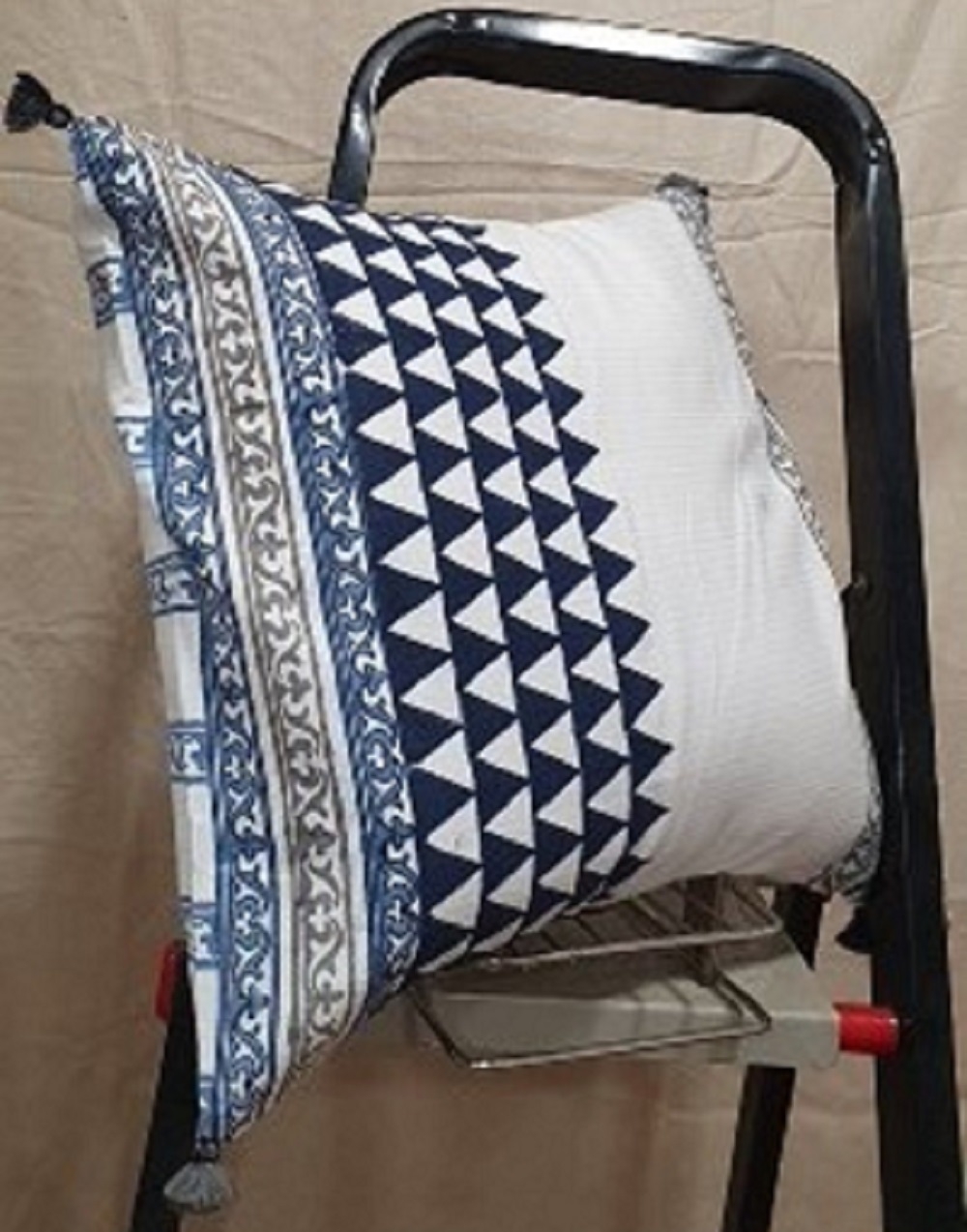 Give your home a modern twist with this handcrafted geometric cushion cover. Designed with precision and printed using traditional Indian block printing techniques, this cushion cover features striking blue and white patterns that add vibrancy and style to any room. Made from soft, breathable cotton, it’s perfect for living rooms, bedrooms, or reading nooks, combining artisan craftsmanship with a contemporary appeal.