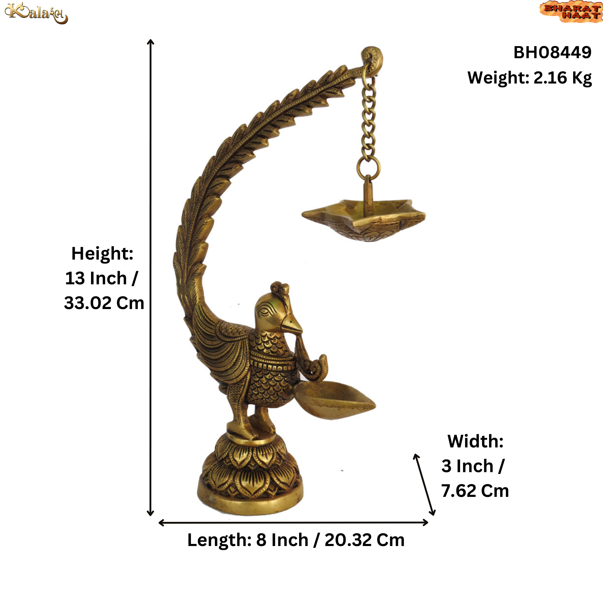 Design: Detailed carvings on the peacock feathers, neck, and lamp bowl for a premium appearance
