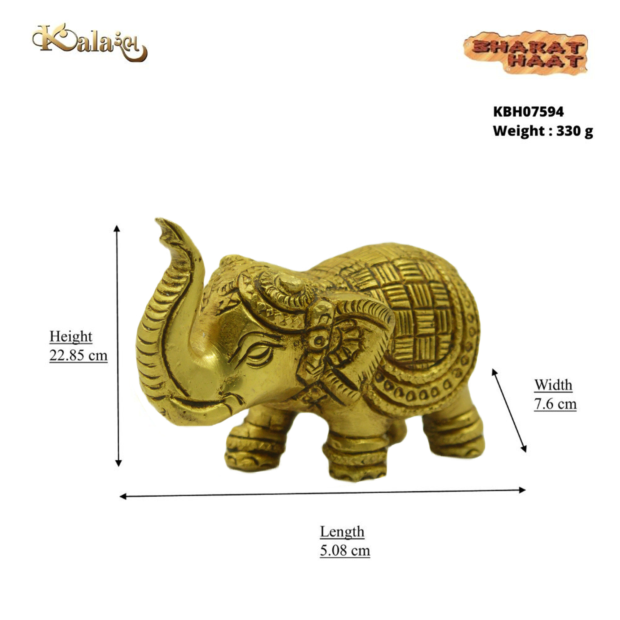 Handcrafted Brass Elephant statue, 2 x 3 x 9 inches, 330g – a perfect blend of elegance and traditional charm for your home or office décor.