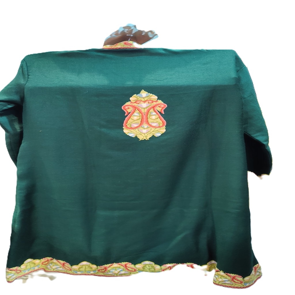 With this gorgeous Kashmiri coat for women, which perfectly combines warmth, comfort, and artistry, you may embrace classic elegance. The coat, which is made by talented Kashmiri artisans by hand, is made of high-quality wool fabric and features intricate Kashmiri embroidery that highlights the rich cultural legacy of the area. This coat is made to keep you warm and add a touch of royalty to your winter wardrobe. It goes well with both contemporary and ethnic ensembles. It is more than just outerwear thanks to its elaborate designs and exquisite details, which also make it a statement piece of tradition and craftsmanship.