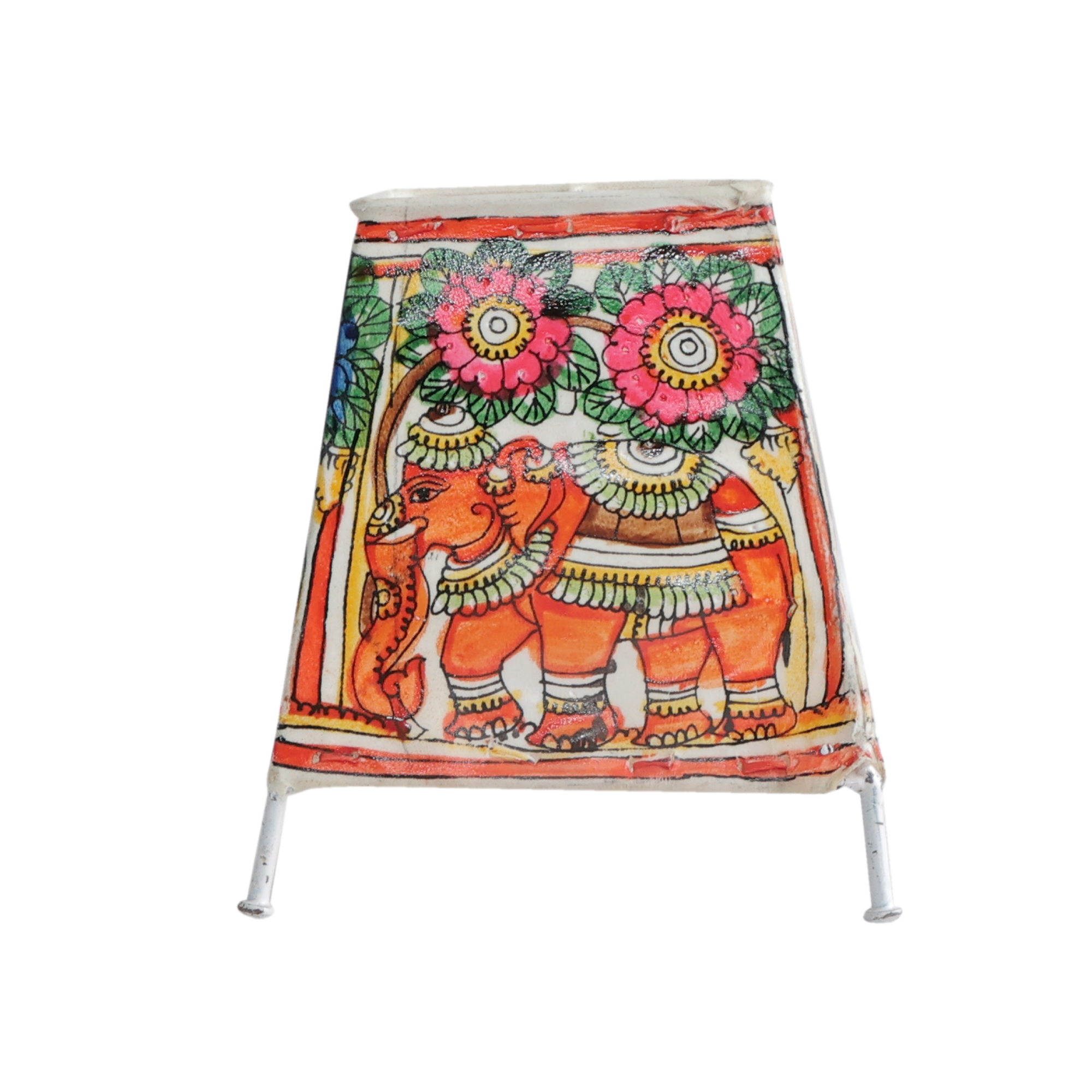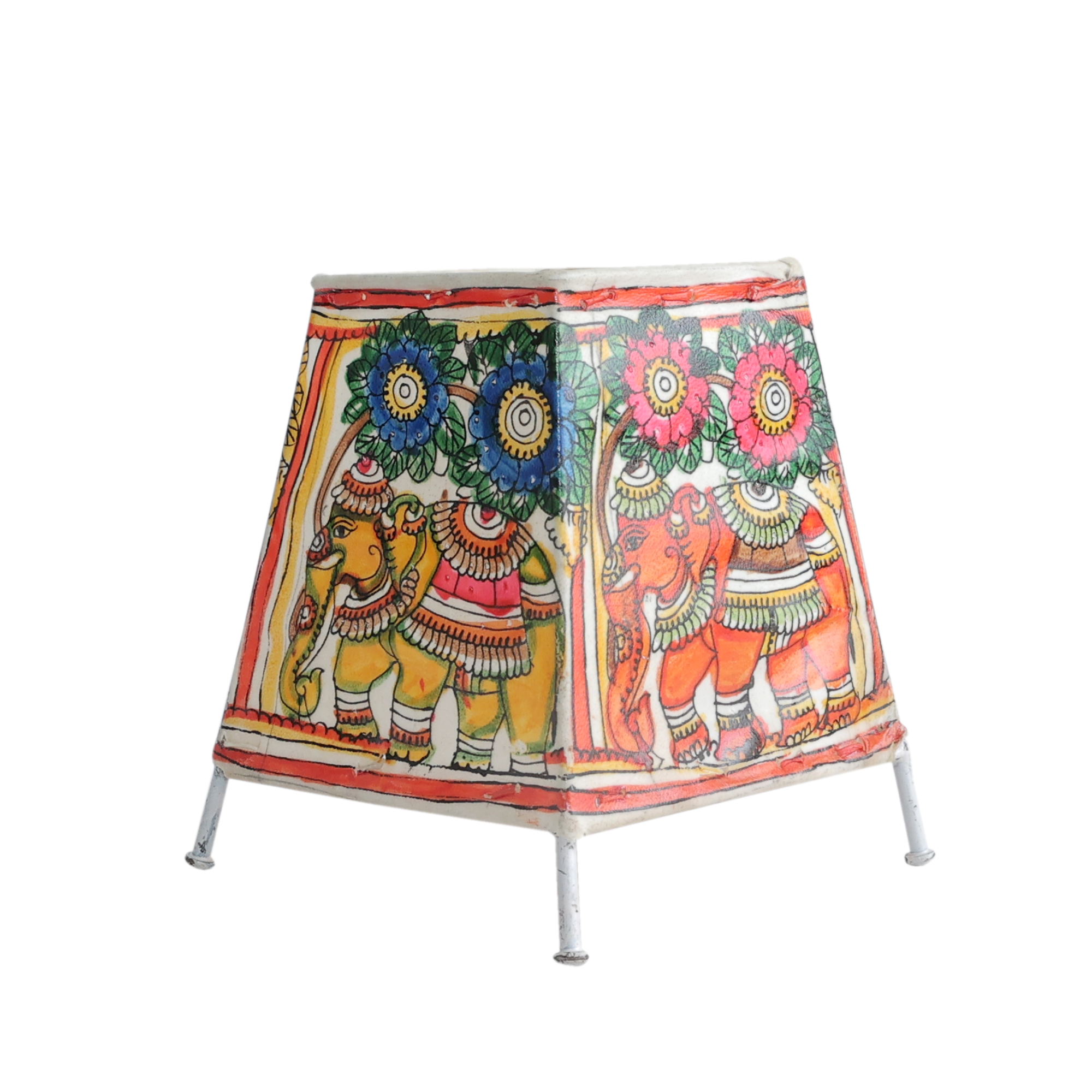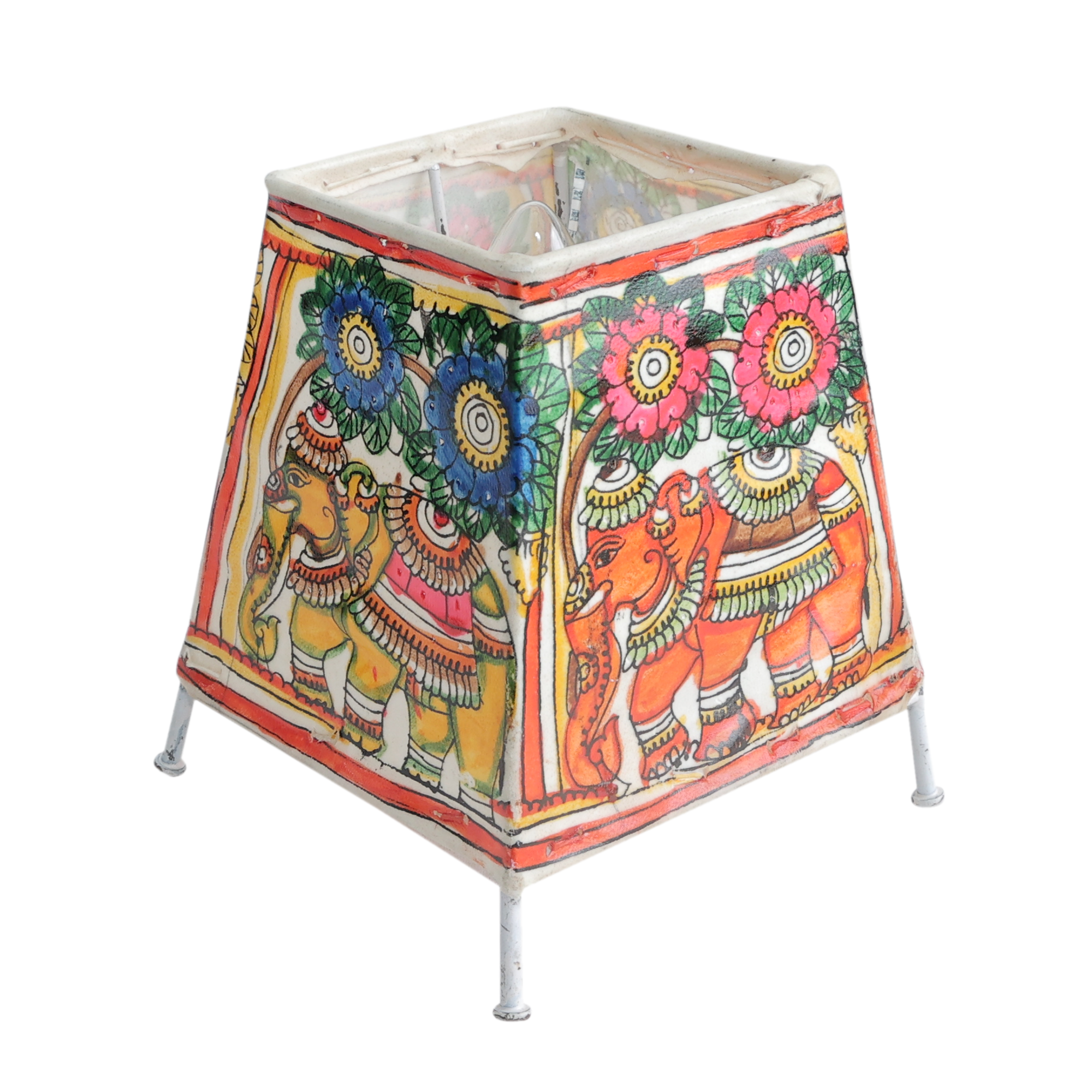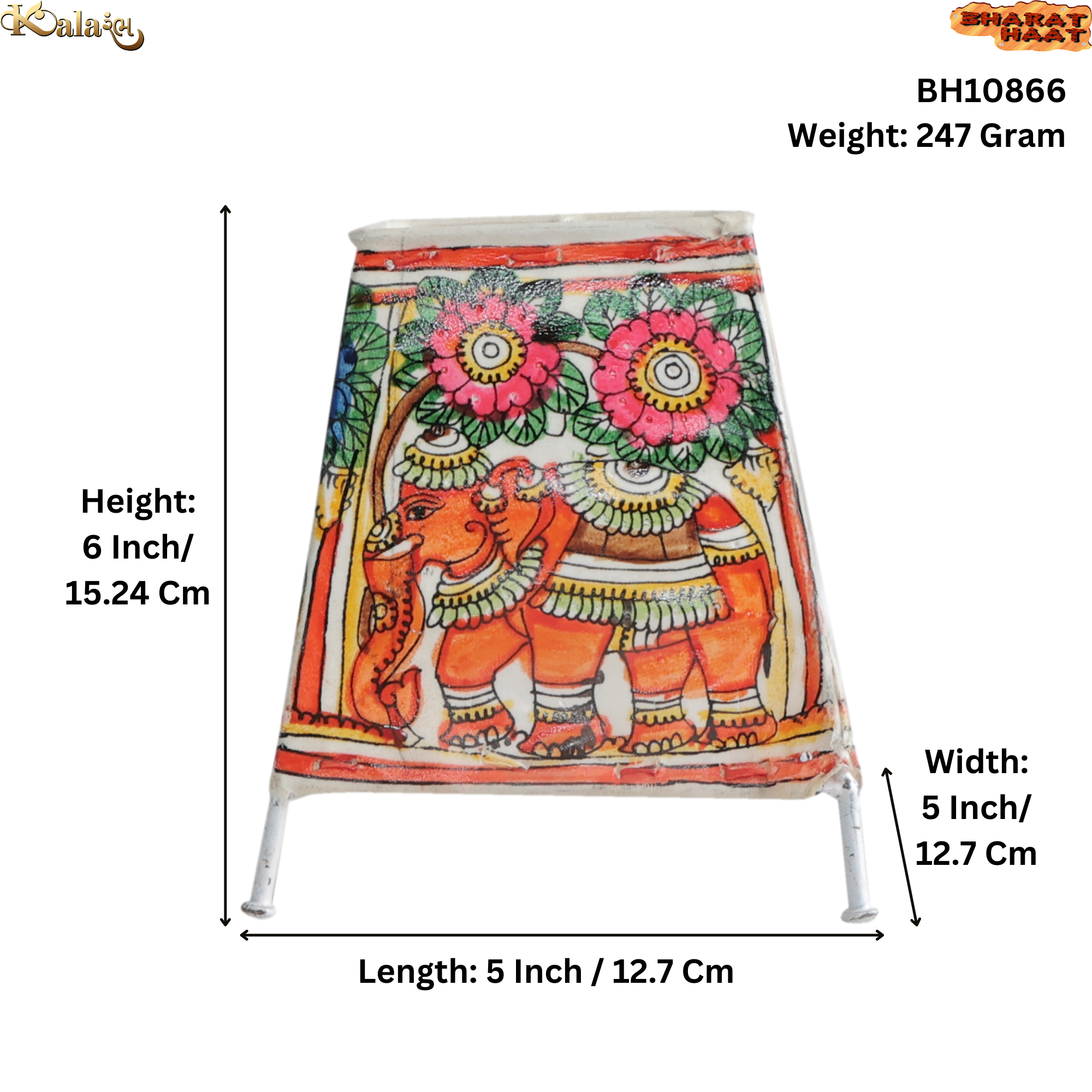 Illuminate your space with this charming Handcrafted Leather Lamp, meticulously made by skilled Indian artisans. Featuring a compact 5 x 5 inch base and 6-inch height, this lamp combines traditional leather craftsmanship with a soft, ambient glow, perfect for creating a cozy atmosphere.