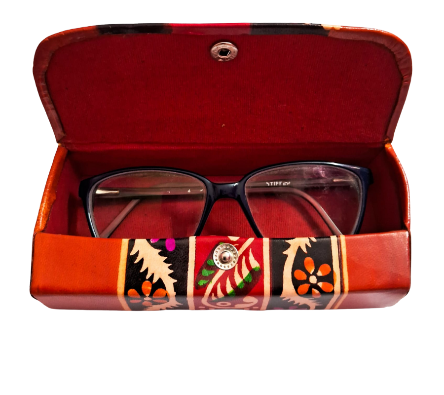 Originating from Shantiniketan in West Bengal, this leather spectacle case draws inspiration from age-old Bengali aesthetics. The vibrant, multi-coloured traditional designs on both sides make it stand out effortlessly. Unlike mass-produced plastic alternatives, this handicraft item is made from genuine leather, giving it a natural texture and long-lasting durability.