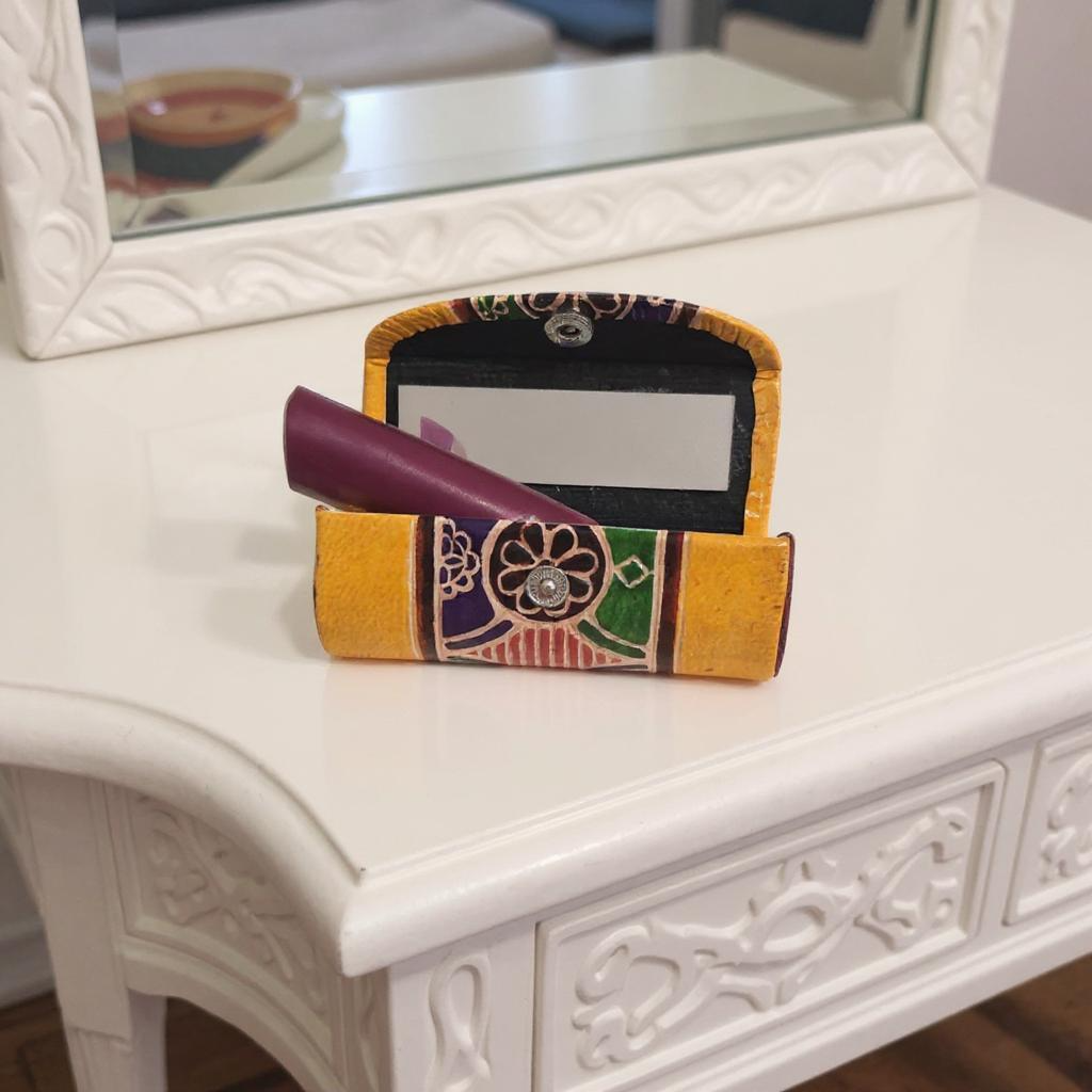 Handcrafted Leather Lipstick Case with Mirror: A Celebration of Utility and Cultural Heritage