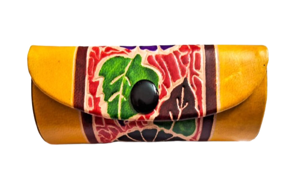 The design process is deeply intentional. Genuine leather is chosen for its grain and strength. Artisans prepare it manually, treating it without machines. Using tools passed down through families, they hand-paint vibrant ethnic patterns that echo Bengal’s folk art legacy.