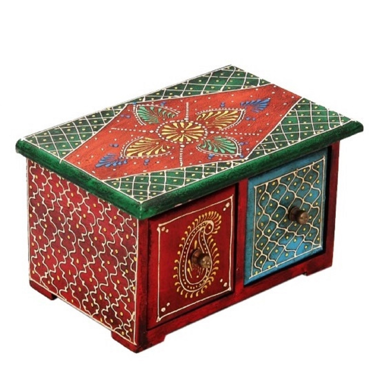 Handmade wooden decorative drawers are artisanal storage pieces crafted from solid woods like mango or teak, often featuring hand-painted motifs or multicolor accents for aesthetic appeal. These compact organizers, blend functionality with traditional craftsmanship, ideal for home decor, jewelry, or spices. They serve as elegant accents for bedrooms, offices, or shelves, emphasizing rustic charm and durability.