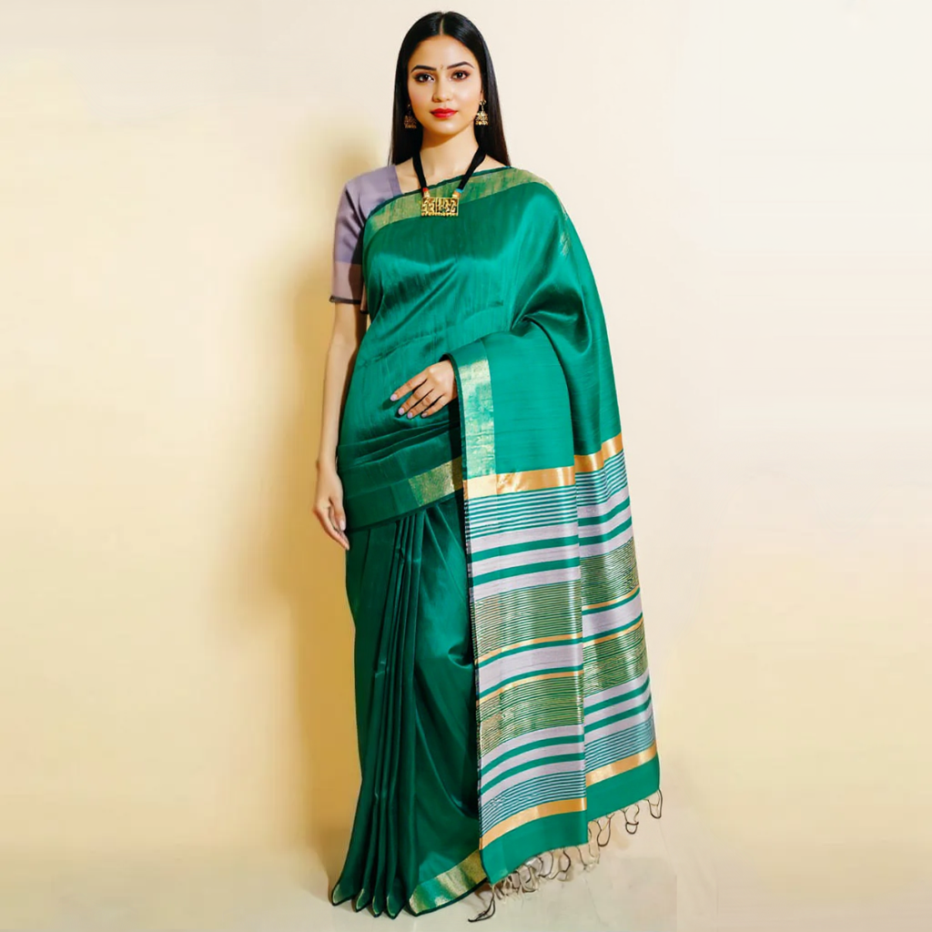 Bhagalpuri Saree is a traditional style of Tassar silk saris. Tassar silk is obtained from silk moths of the Antherea mylitta, Antherea pernyi, Antherea yamamai, Antharea paphia and Antherea royeli. Pit Looms and Frame Looms are used to weave beautiful Tassar Silk Sarees of Bhagalpur. These Sarees are in huge demand in India and in the world due to its special texture that is not present in other type of Silk Sarees. These Sarees are exported all over the world. These Sarees have Geographical Indication (GI) Tag.