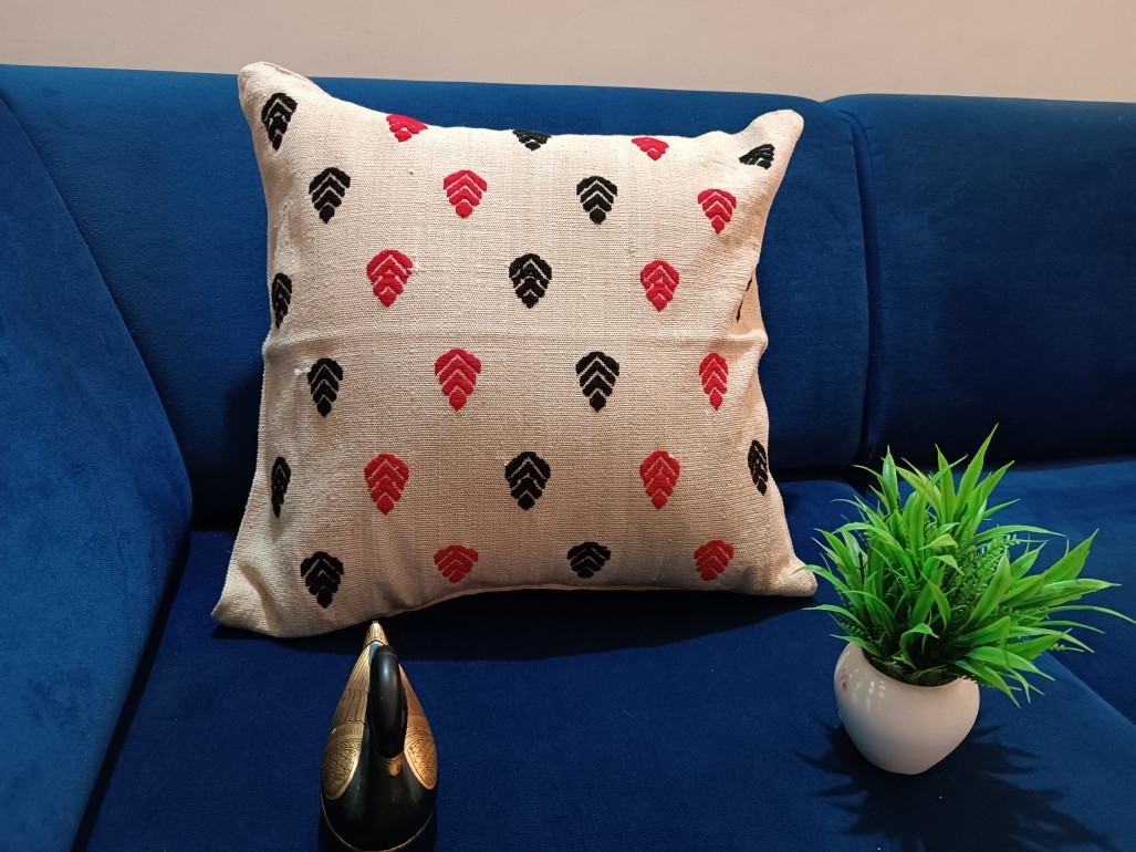 Bring warmth and elegance to your living space with this handloom cotton cushion cover, skillfully woven by traditional artisans. Made from breathable cotton, it offers comfort along with durability for everyday use. The handcrafted texture and timeless design add a charming accent to sofas, chairs, or beds, making it a perfect blend of style, sustainability, and artisanal craftsmanship.