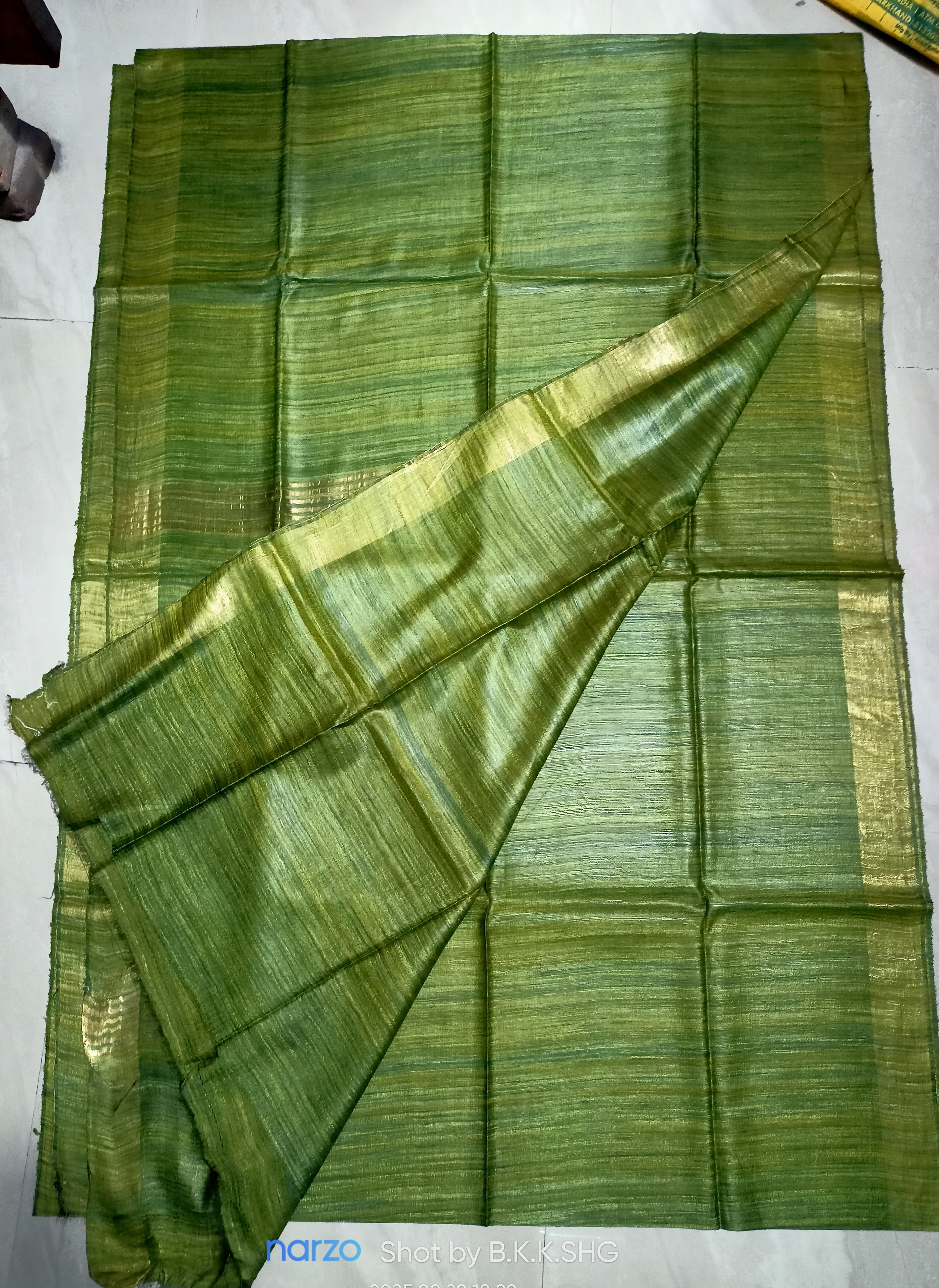 Tasar by GHICHA jari border Hand loom waeving pure silk sareeThe Tussar Ghicha Silk Saree is a symbol of elegance and tradition, handcrafted with precision by skilled artisans of Jharkhand. With a rich texture and natural sheen, this saree exudes sophistication, making it a perfect choice for special occasions.