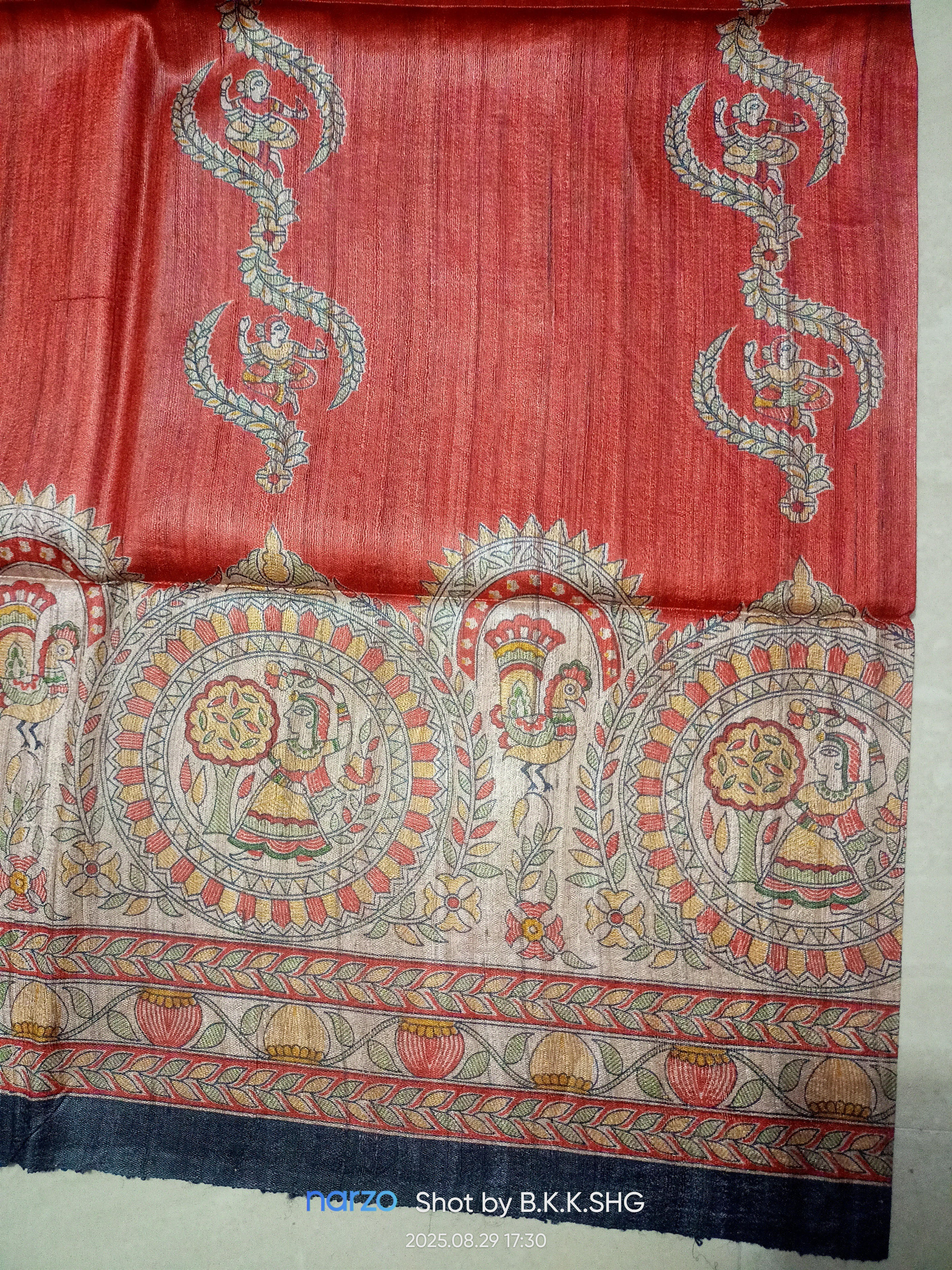The Tussar Ghicha Silk Saree is a symbol of elegance and tradition, handcrafted with precision by skilled artisans of Jharkhand. With a rich texture and natural sheen, this saree exudes sophistication, making it a perfect choice for special occasions.