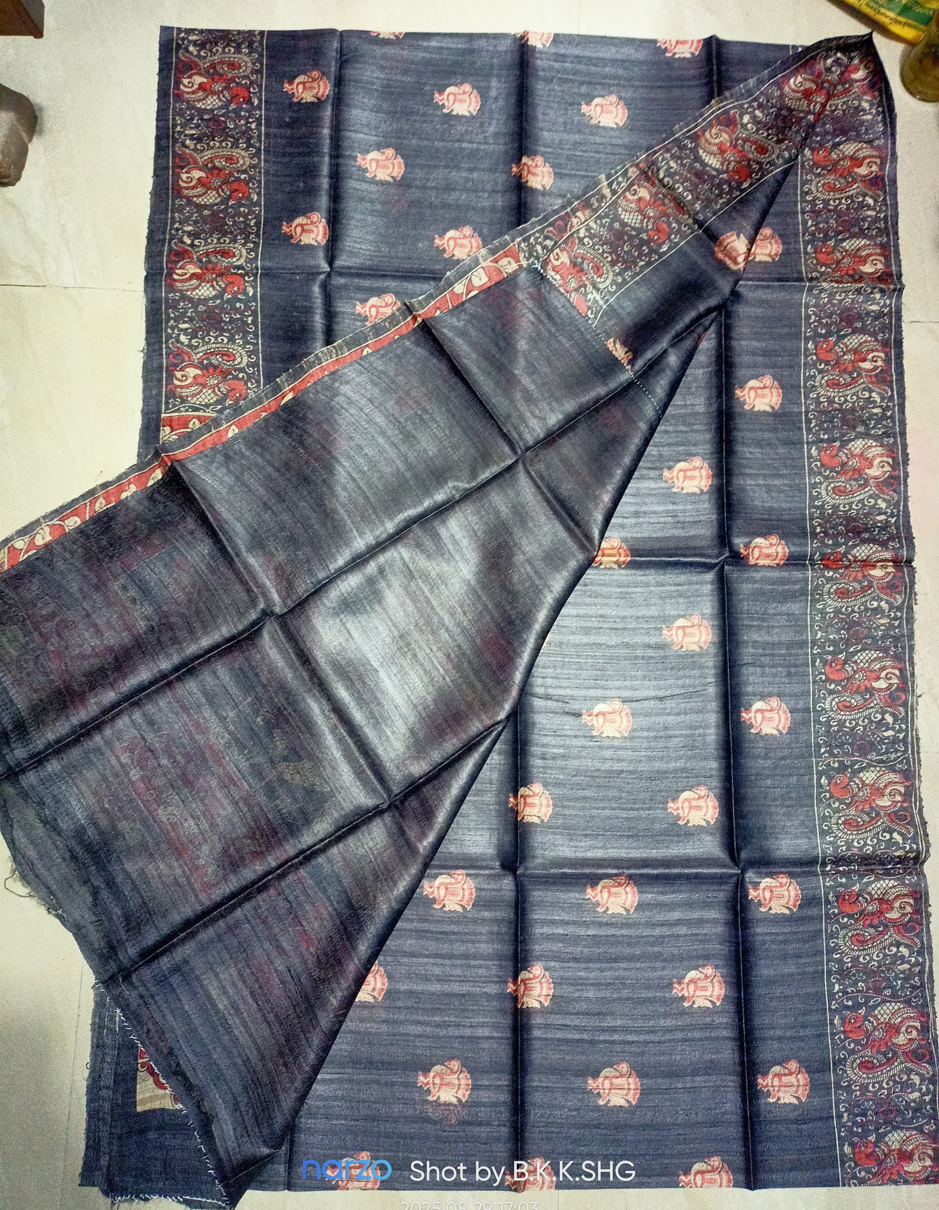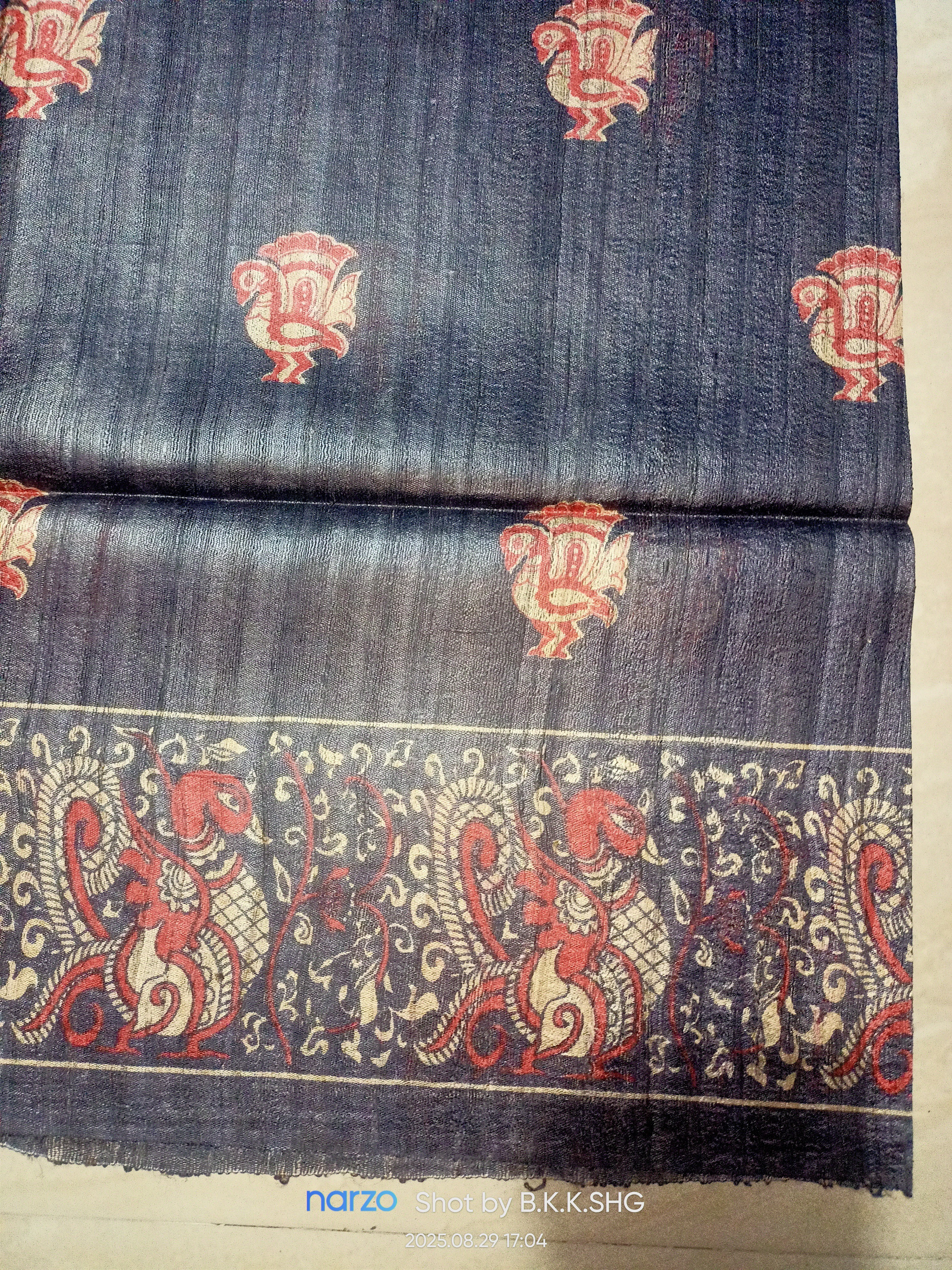 Tasar by ghicha plain Print pure silk saree