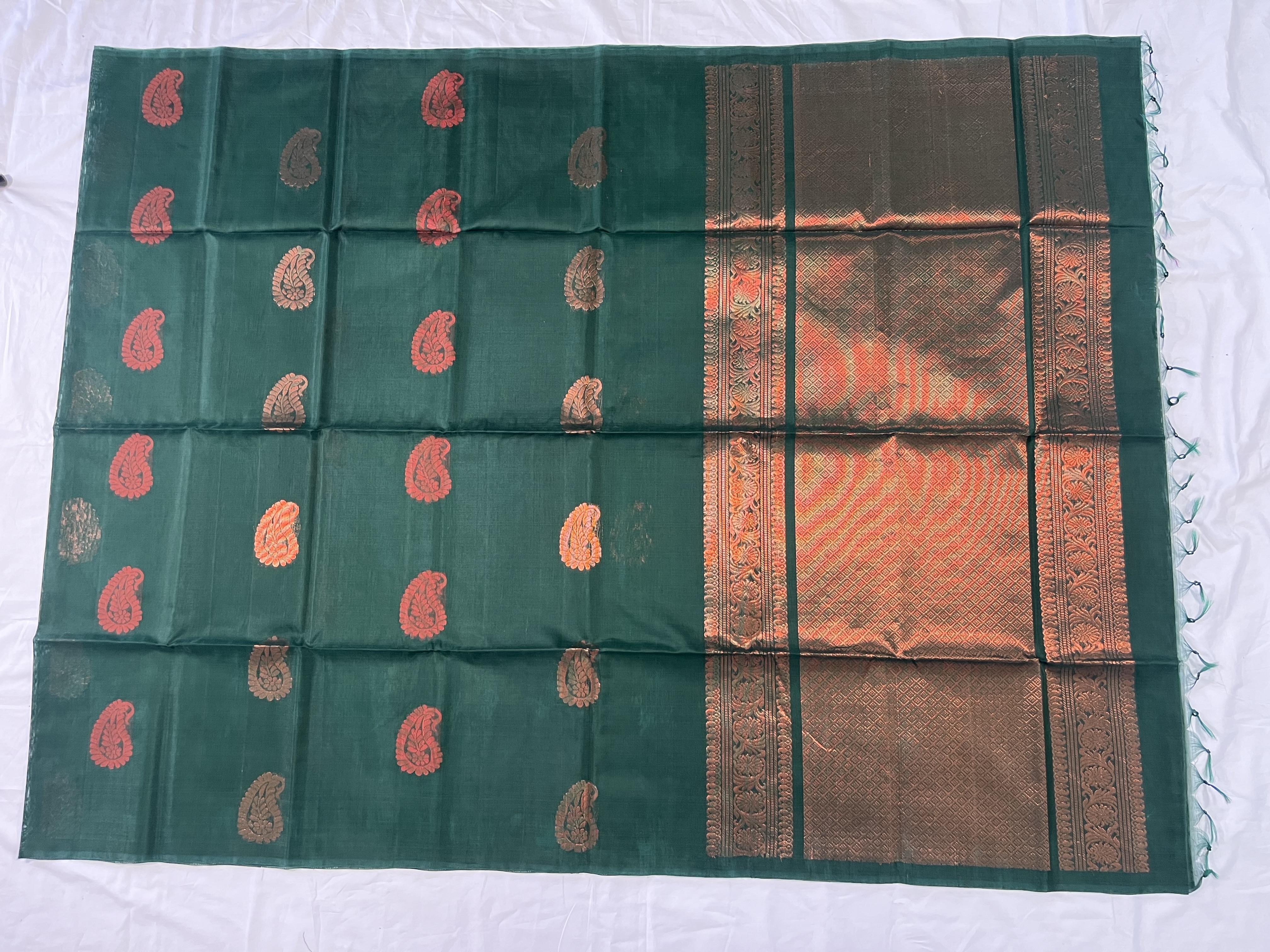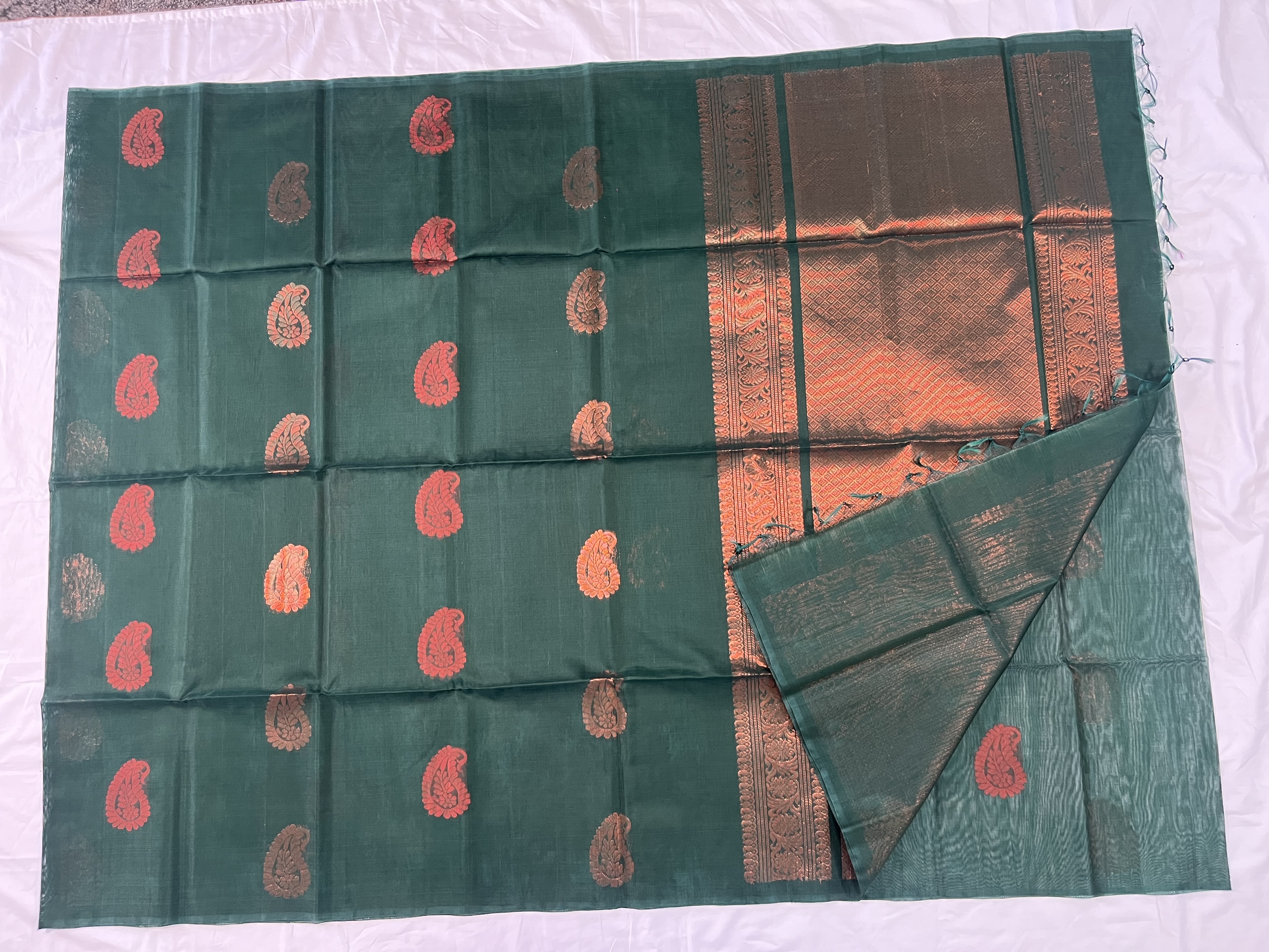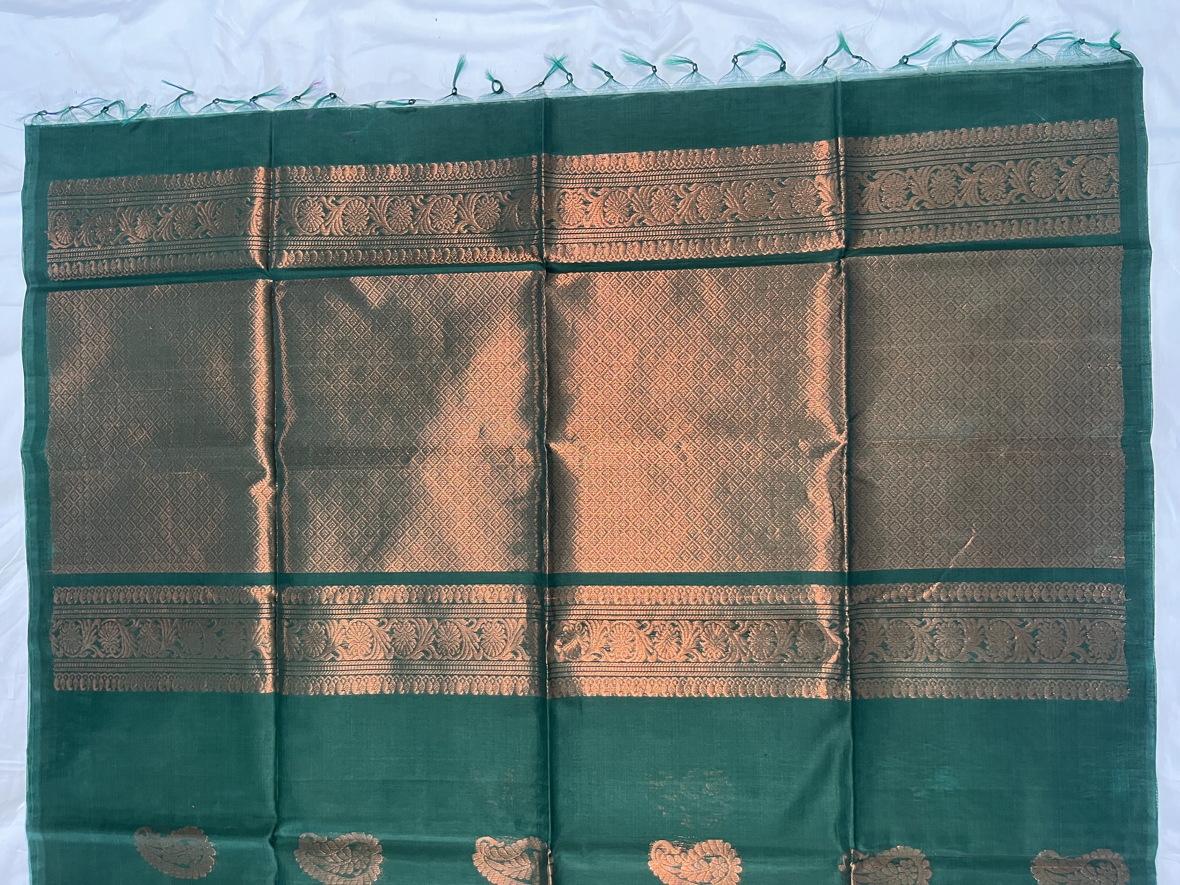 The Silk Cotton Saree is also known as Kora Sarees which are woven in Coimbatore, Tiruppur and Erode districts of Tamilnadu. It gives you highly rich and elegant look. Each Saree has unique motifs all over. It is made with silk warp and cotton weft(2/100s count).These Sarees are woven with large floral contemporary designs with fancy colors. As the name implies these Sarees are very soft handle and light weight which makes the wearer so comfortable.