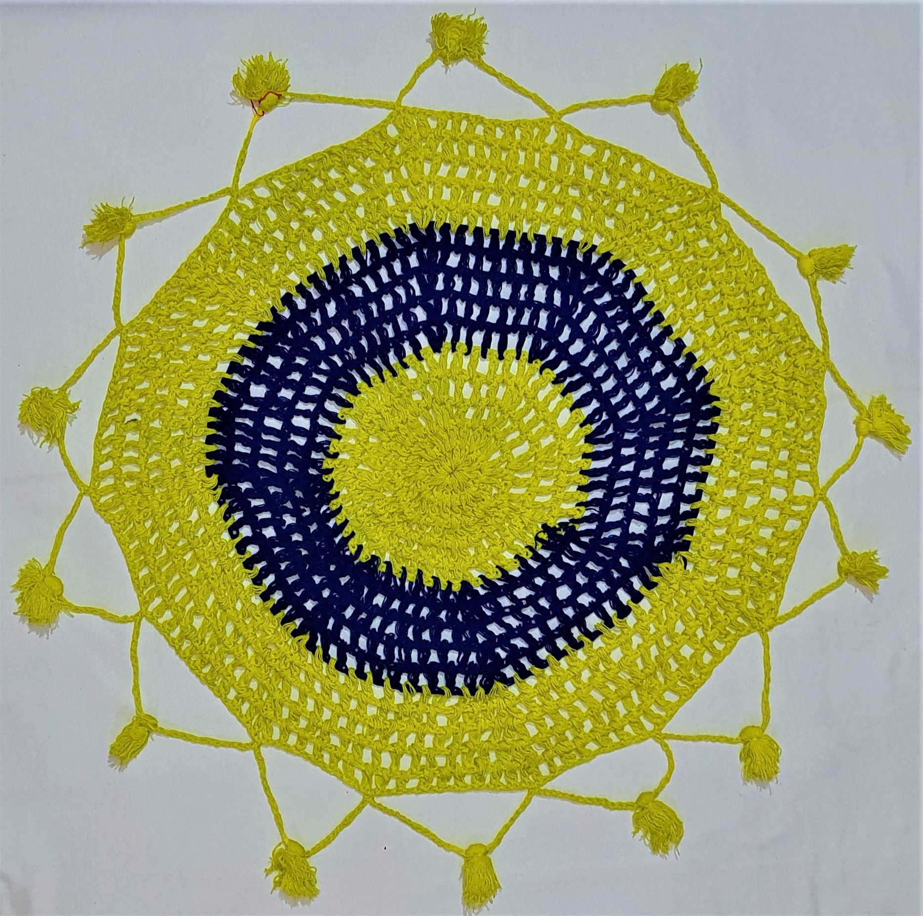 FRUIT COVER USED FOR COVER THE FRUIT BOWL . IT IS MED BY COLOURFUL WOOLEN THREADS .