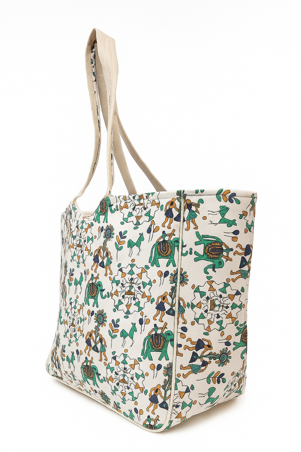 Handmade Cotton Tote Bag with Traditional Applique & Tribal Print | Eco-Friendly Spacious Shoulder Bag for Women | Shopping, Travel & Daily Use