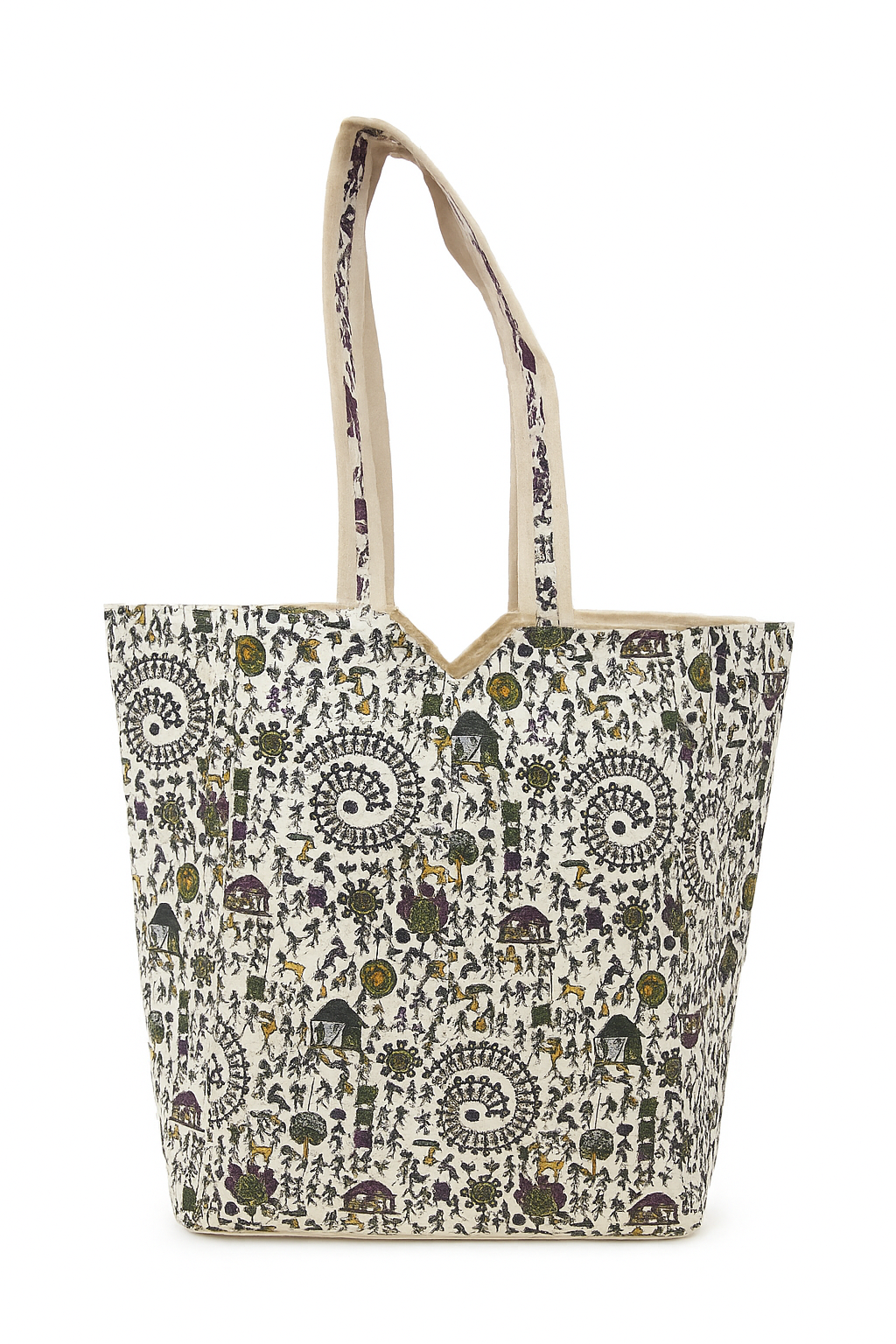 The spacious design makes it perfect for shopping, office, college, travel, or daily essentials. Strong cotton fabric ensures durability, while the artistic tribal motifs and applique detailing give it a unique ethnic charm.