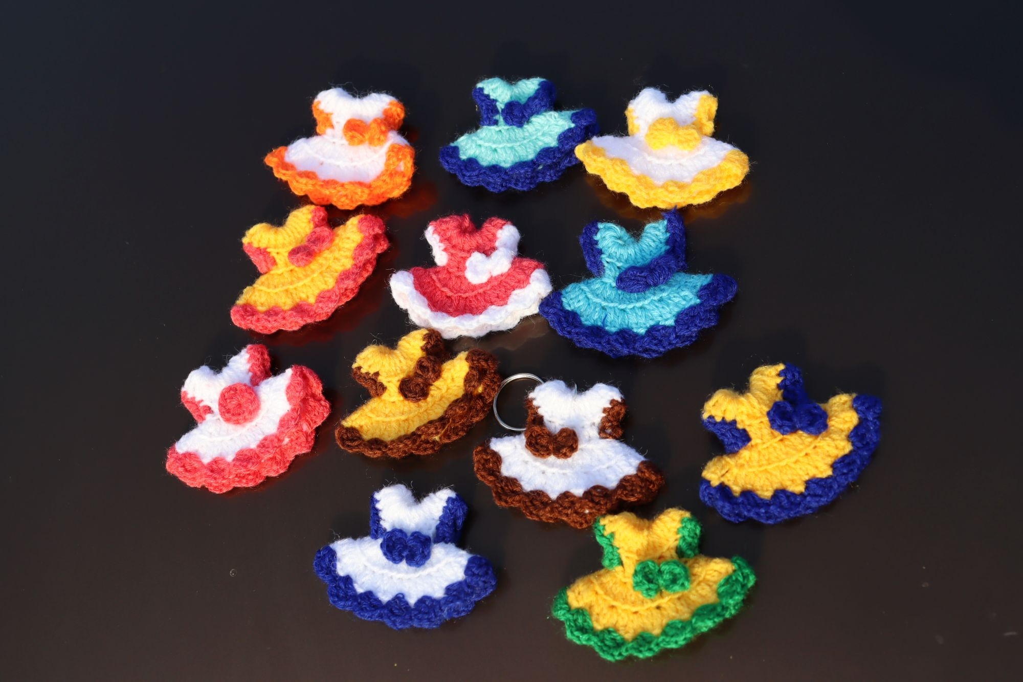 Handmade Crochet Baby Frock Keychain for Women & Girls, Cute Woolen Bag Charm & Key Ring , Unique Gift for Car, Bike and Handbags , With Multi Color Variant