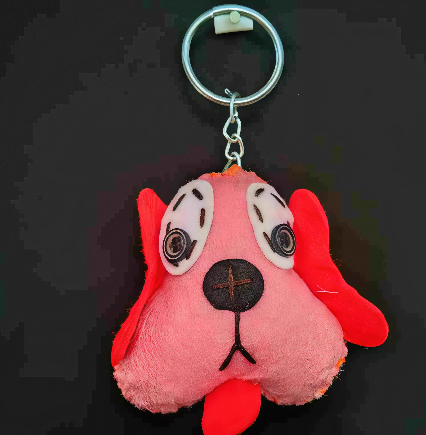 This is a cute and quirky plush keychain featuring a red dog face with a sad expression. Made from soft felt fabric with detailed stitching, it comes with a sturdy metal keyring, perfect for attaching to keys, backpacks, or handbags. Compact and lightweight, it's a fun and charming accessory for everyday use.
