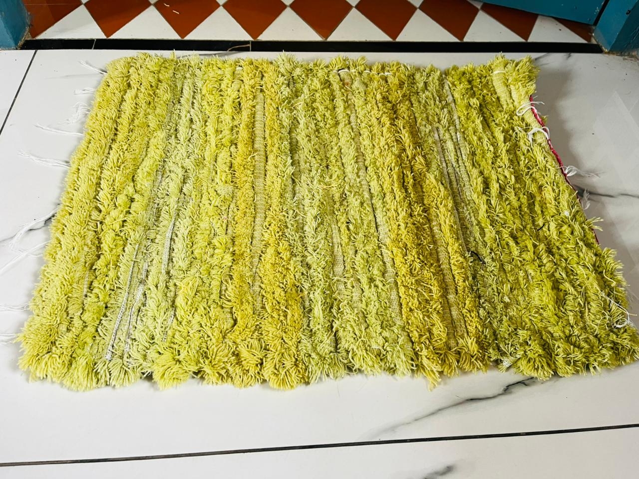 Handmade Fader Cloths and Pure Cotton yarn Door Mat Green and White