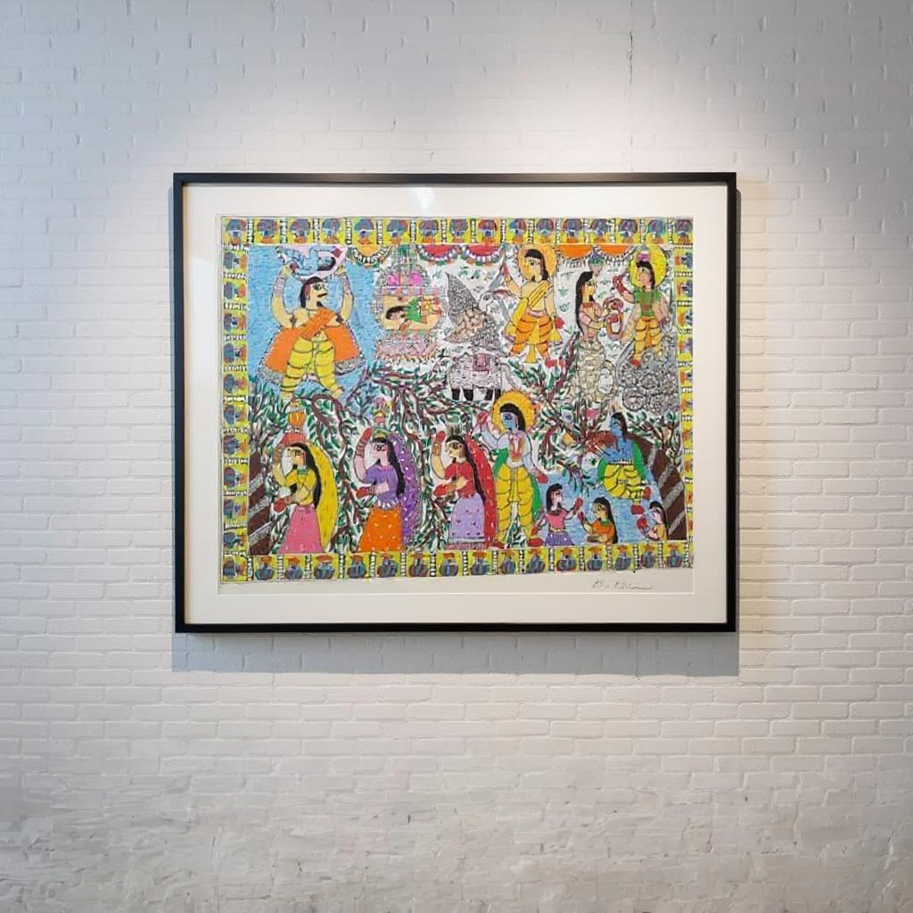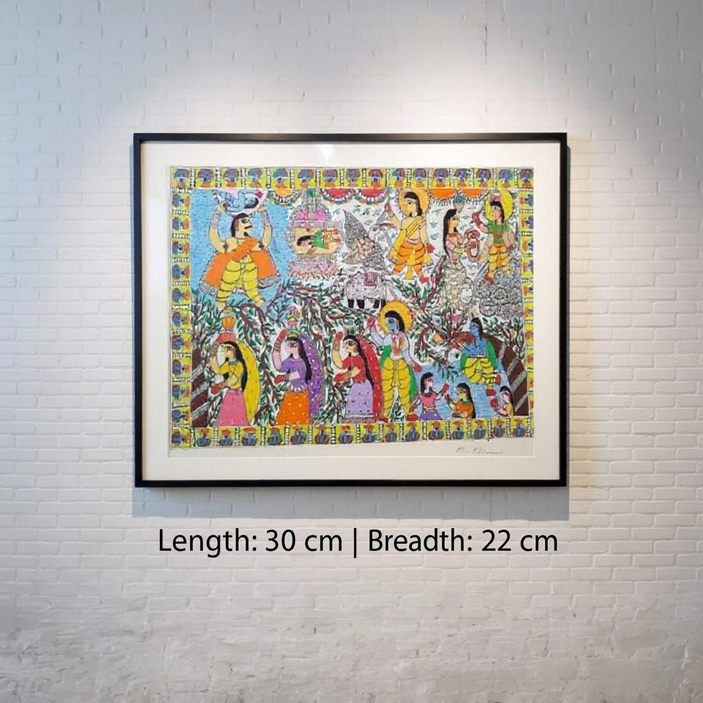 Madhubani paintings often feature a wide range of subjects, including mythological stories, religious deities, scenes from epics like the Ramayana and Mahabharata, nature, animals, birds, village life, and social rituals. These paintings are deeply rooted in the cultural and religious traditions of the region.