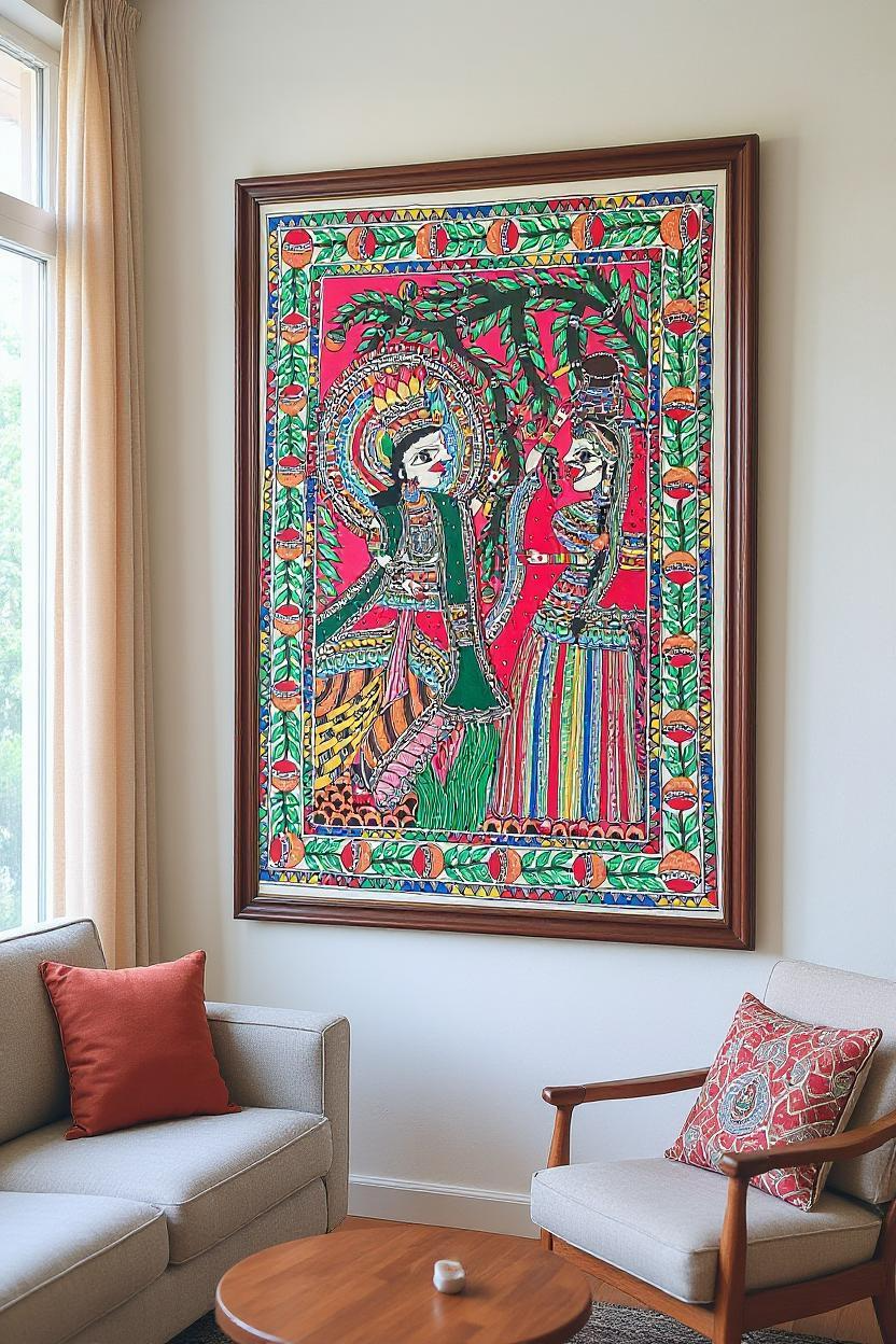 Display this wall hanging in your living room, hallway, or any space that craves a touch of traditional elegance and cultural richness. Let the intricate lines and vibrant colors of this Madhubani masterpiece breathe life and meaning into your surroundings, fostering a sense of connection with nature and heritage.