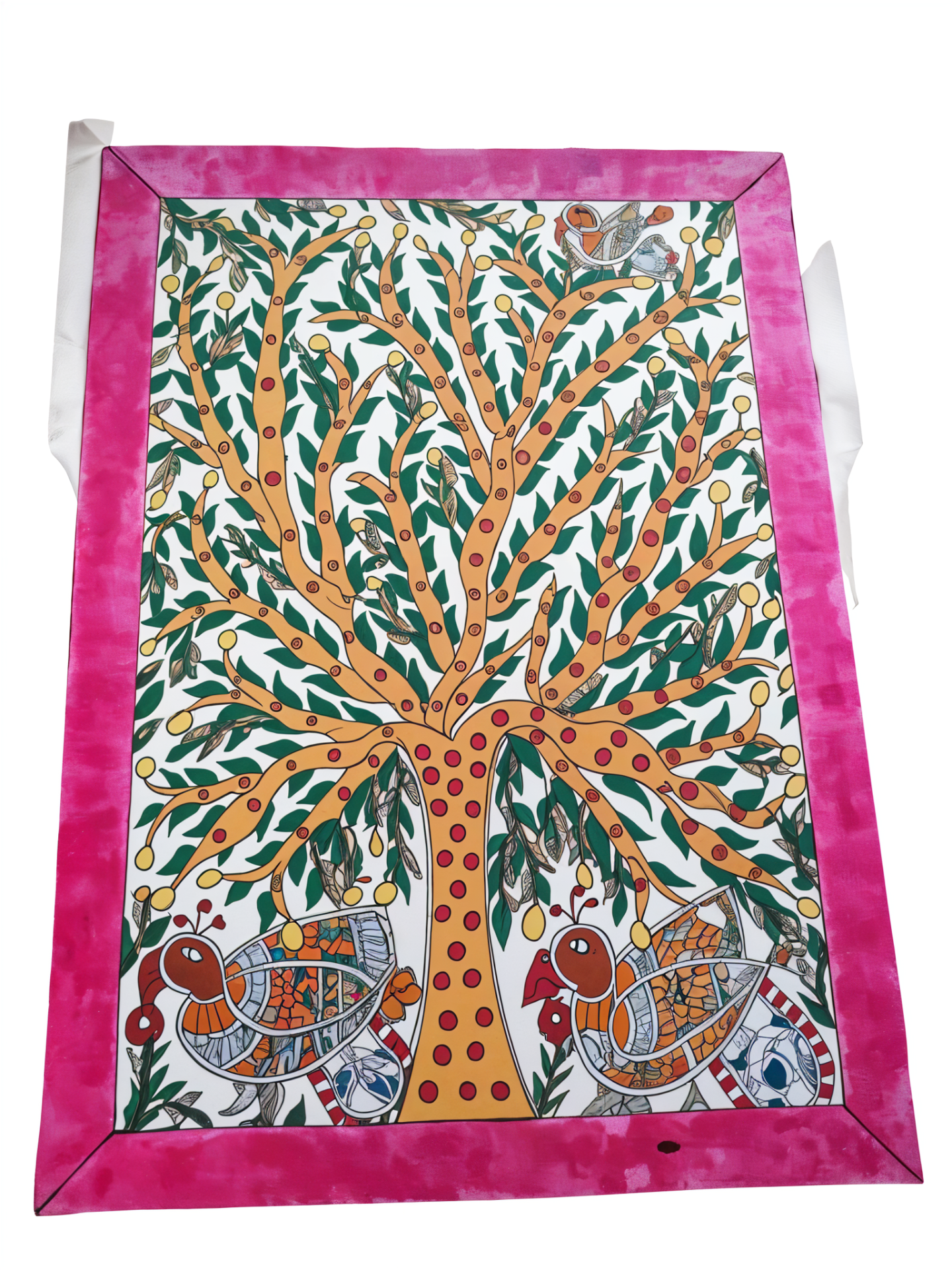 Display this wall Madhubani Painting hanging in your living room, hallway, or any space that craves a touch of traditional elegance and cultural richness. Let the intricate lines and vibrant colors of this Madhubani masterpiece breathe life and meaning into your surroundings, fostering a sense of connection with nature and heritage