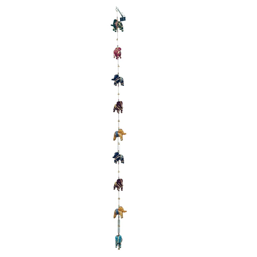 Bring home a touch of tradition and charm with this Handmade Elephant String, crafted in a luxurious velvet finish. Featuring colorful, hand-painted elephant figures, delicate pearl strands, and jingling metal bells, each piece reflects the intricate craftsmanship of skilled Indian artisans. Perfect for decorating doorways, windows, or walls, this string adds a vibrant, festive feel to any space.