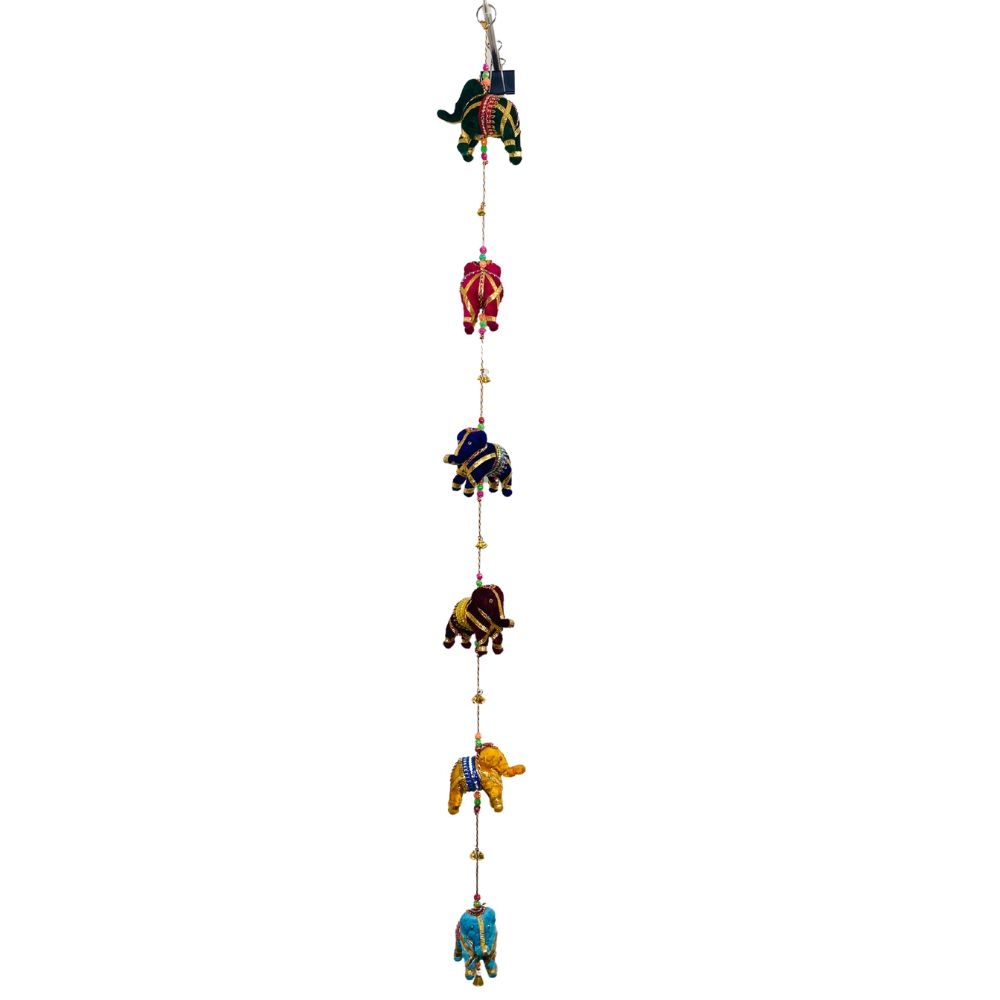 Bring home a touch of tradition and charm with this Handmade Elephant String, crafted in a luxurious velvet finish. Featuring colorful, hand-painted elephant figures, delicate pearl strands, and jingling metal bells, each piece reflects the intricate craftsmanship of skilled Indian artisans. Perfect for decorating doorways, windows, or walls, this string adds a vibrant, festive feel to any space.