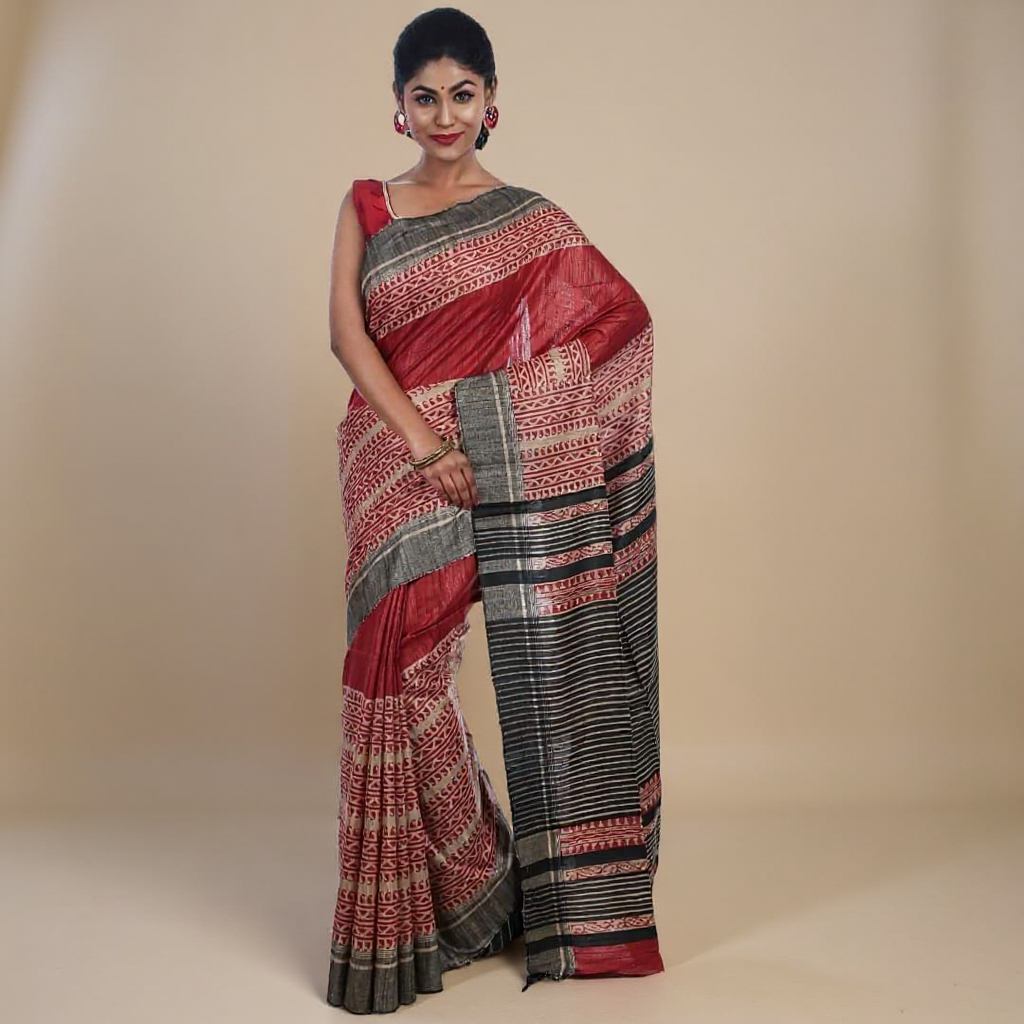Handwoven Bhagalpuri Tussar Silk Printed Saree