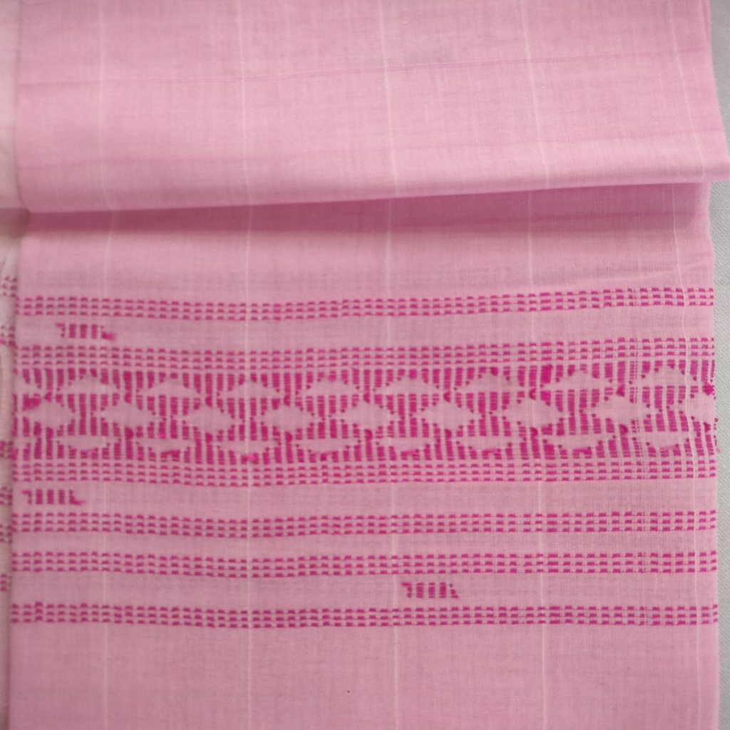 This gorgeous handwoven Manipuri cotton dupatta is a stunning fusion of comfort, culture, and craftsmanship that will envelop you in tradition. This dupatta, which reflects the rich textile legacy and ageless weaving techniques of Manipur, is painstakingly woven by talented artisans using soft, breathable cotton. The dupatta, which is renowned for its exquisite designs and delicate texture, lends elegance to both ethnic and fusion attire. It is ideal for both festive styling and daily elegance because of its delicate handwoven details and lightweight feel. It is Manipur-sourced 100% handwoven cotton with classical themes and delicate texture; it is breathable, lightweight, and drape-friendly; it has an adaptable design for sarees, suits, and kurtas; and it is produced ethically by regional craftspeople. With this exquisitely designed Manipuri cotton drape, which combines tradition with modern elegance, you may honor the technique of handlooming.