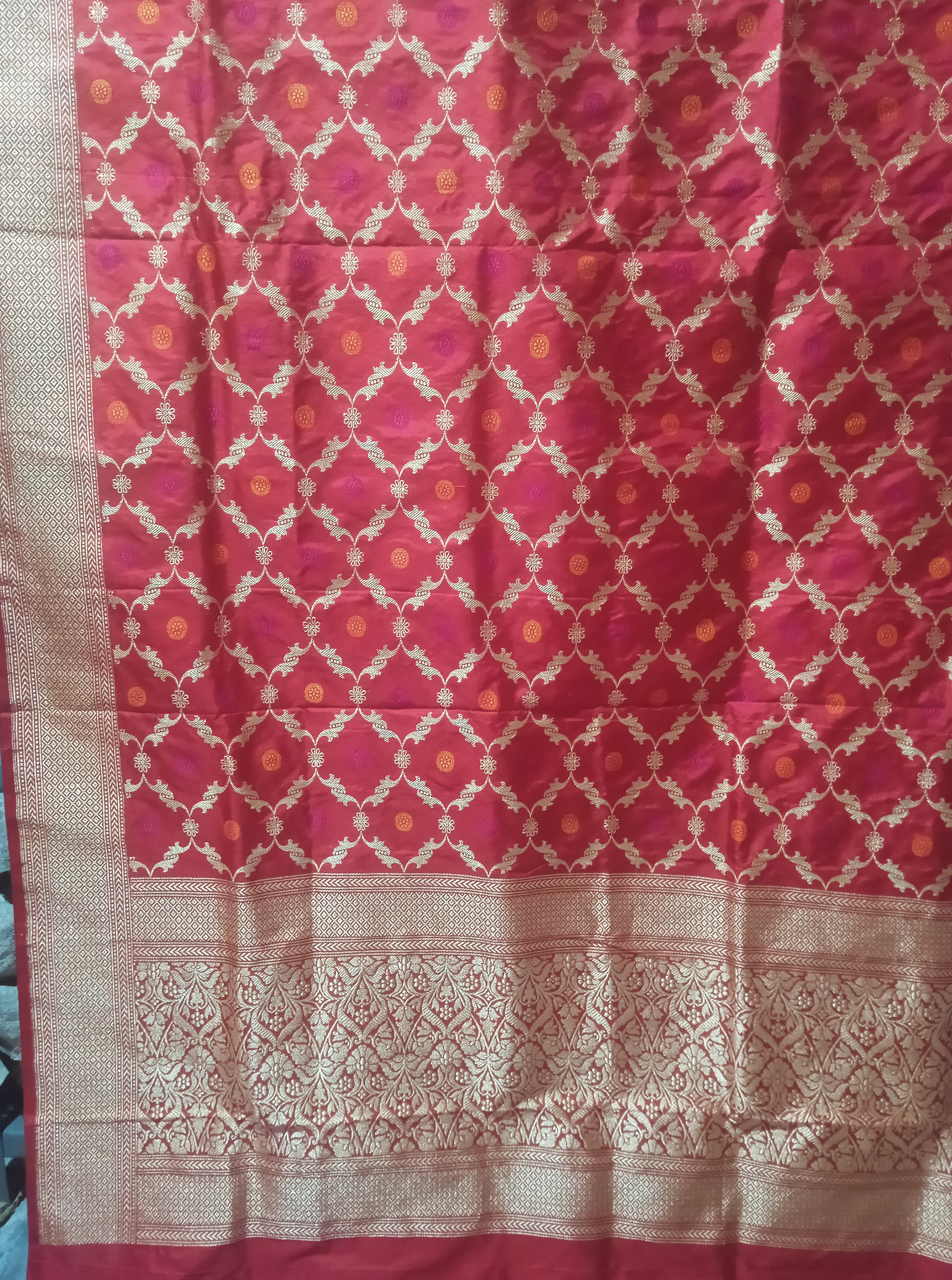 Handwoven Silk Katan Kadua Jaal Dupatta | Red | 2.4 meter