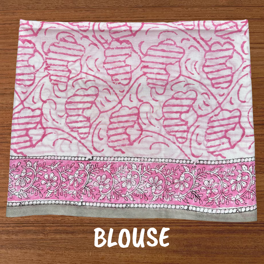 HANSINI HANDBLOCK PREMIUM COTTON SAREE BLOUSE